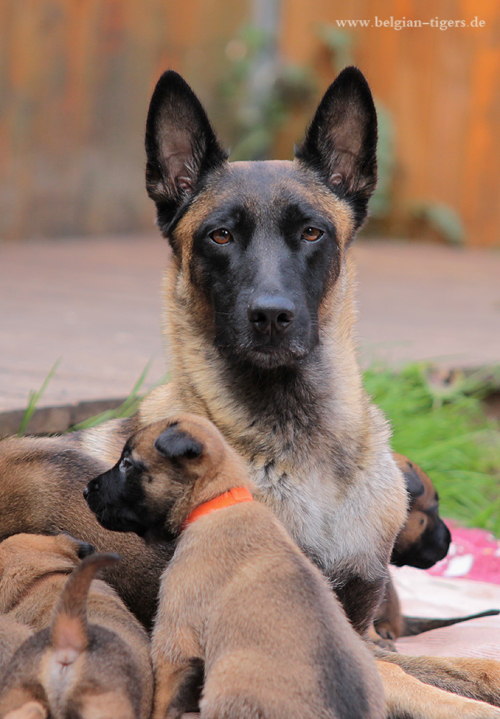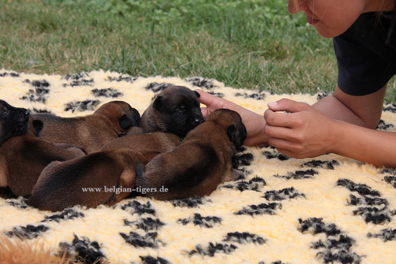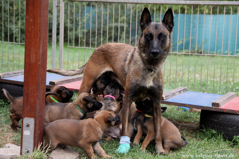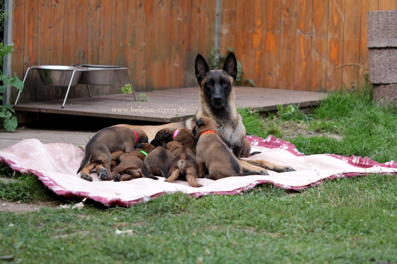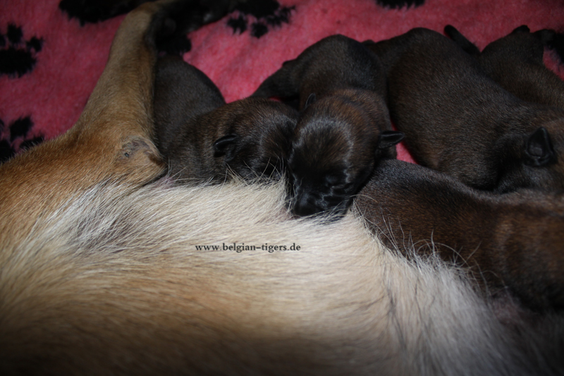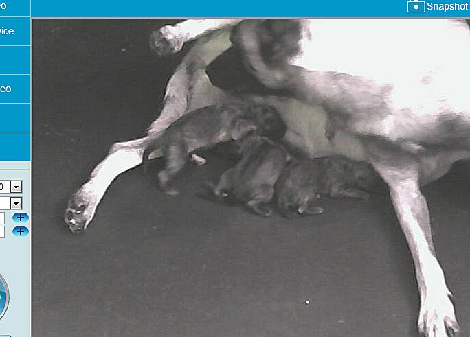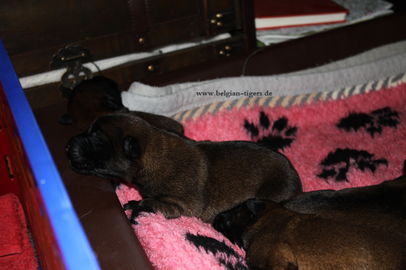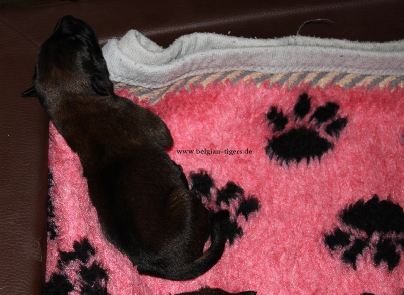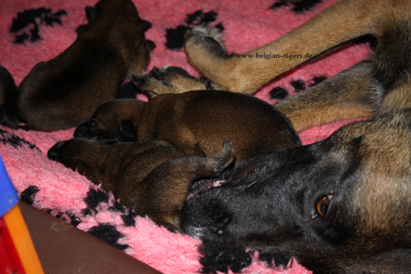 Tag 4 - Gina und den F*lingen geht es bestens. Sie weiß wies geht und arbeitet wiedermal nach ihrem Plan :-)) GsD hat sie jetzt das Zeugs sammeln aufgegeben - aber Ball spielen muss schon wieder sein. Momentan steckt sie das alles hier mit links weg. Die Kleinen haben auch schon schön zugenommen und somit, würd ich sagen, sind sie alle übern Berg.