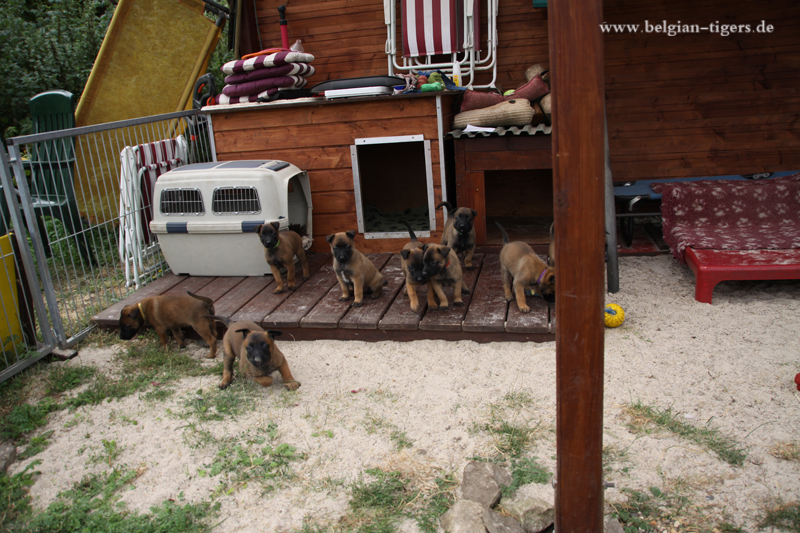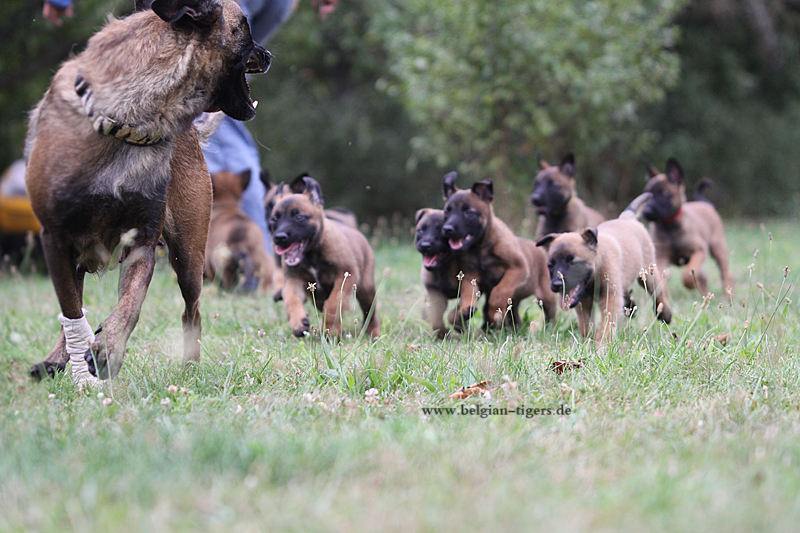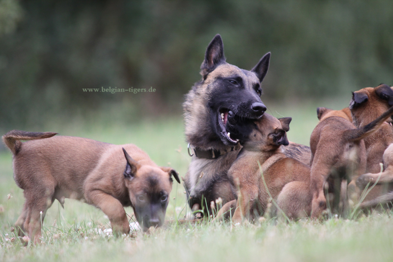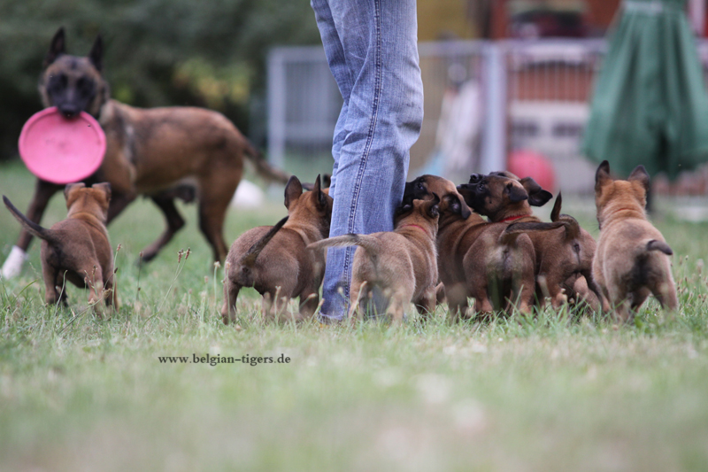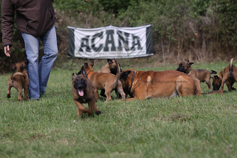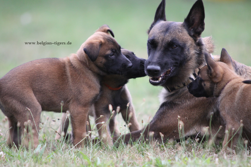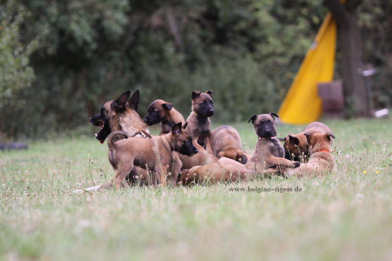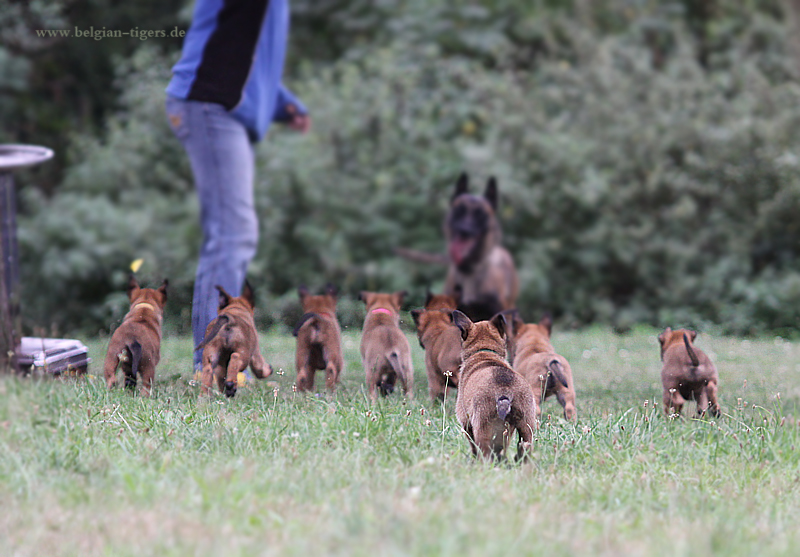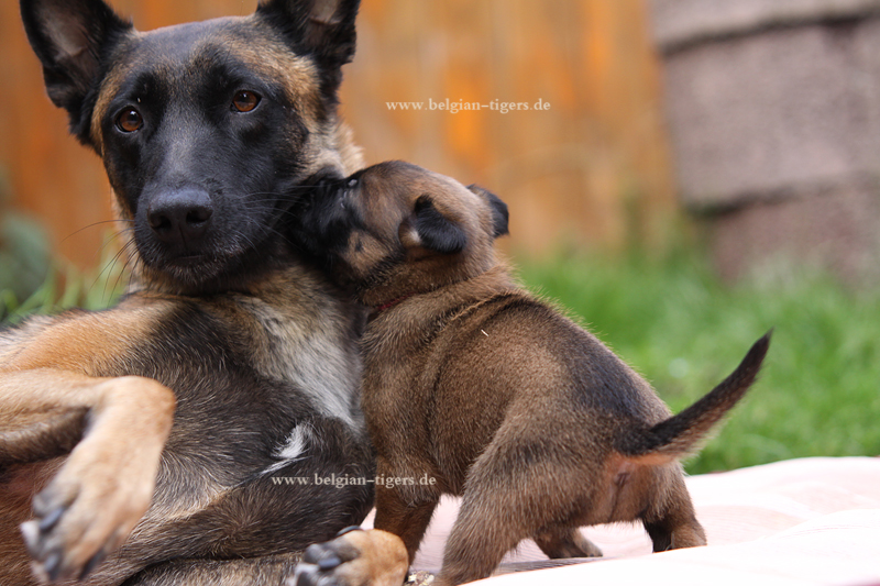 Gestern Nachmittag haben wir das Völkchen mal mit nach draußen genommen - ein bisschen Sonne tanken. Gino ist sehr erfreut über *seine* Welpen - die eigentlich seine Enkel sind :-))) Er ist ein richtig guter Rudelführer - mein Bester !!!