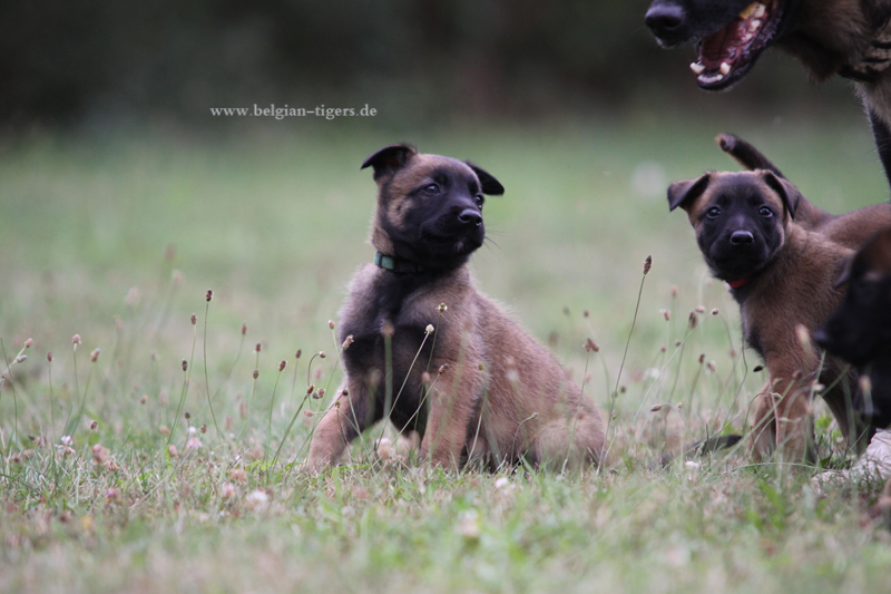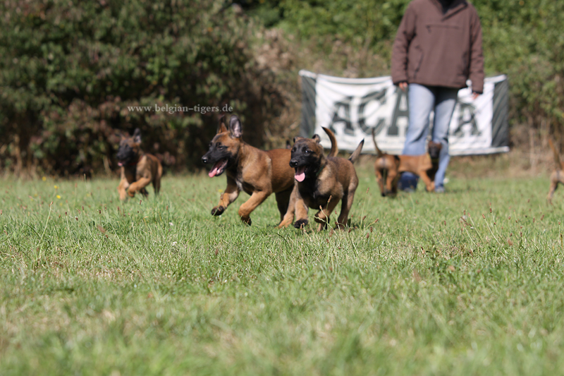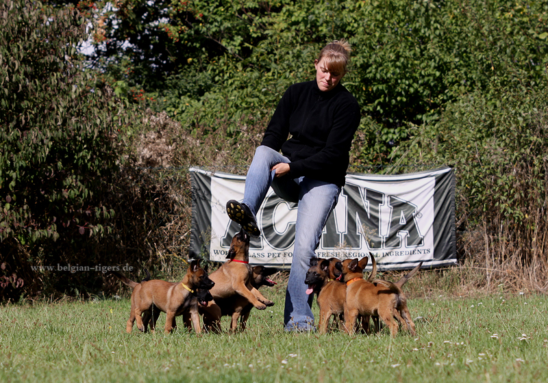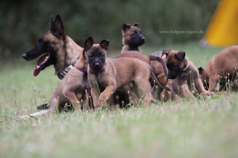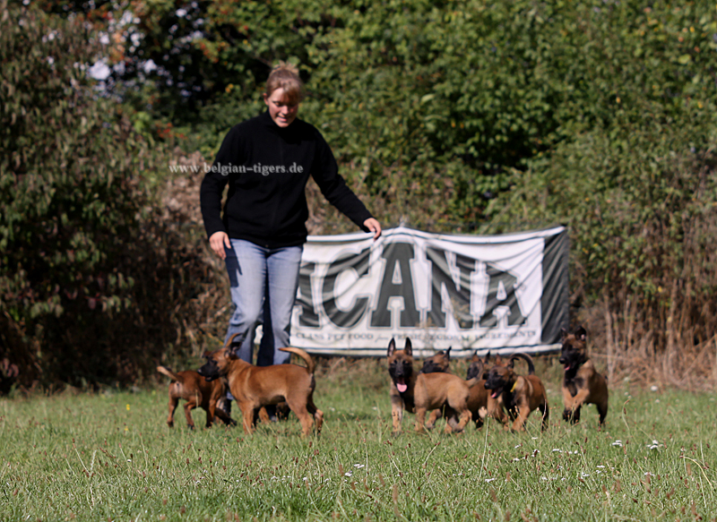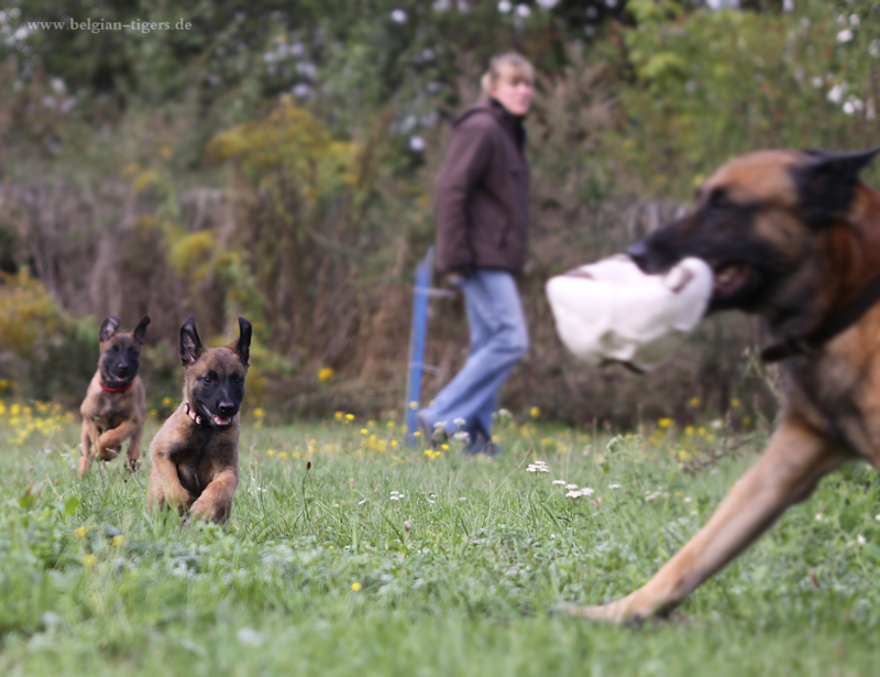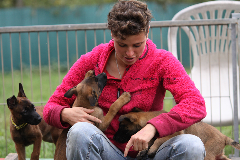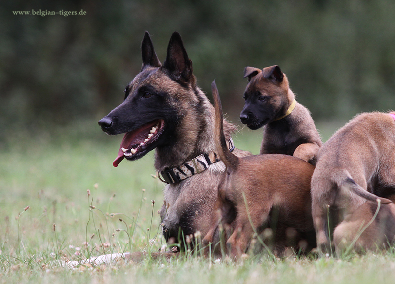 Gestern Nachmittag haben wir das Völkchen mal mit nach draußen genommen - ein bisschen Sonne tanken. Gino ist sehr erfreut über *seine* Welpen - die eigentlich seine Enkel sind :-))) Er ist ein richtig guter Rudelführer - mein Bester !!!