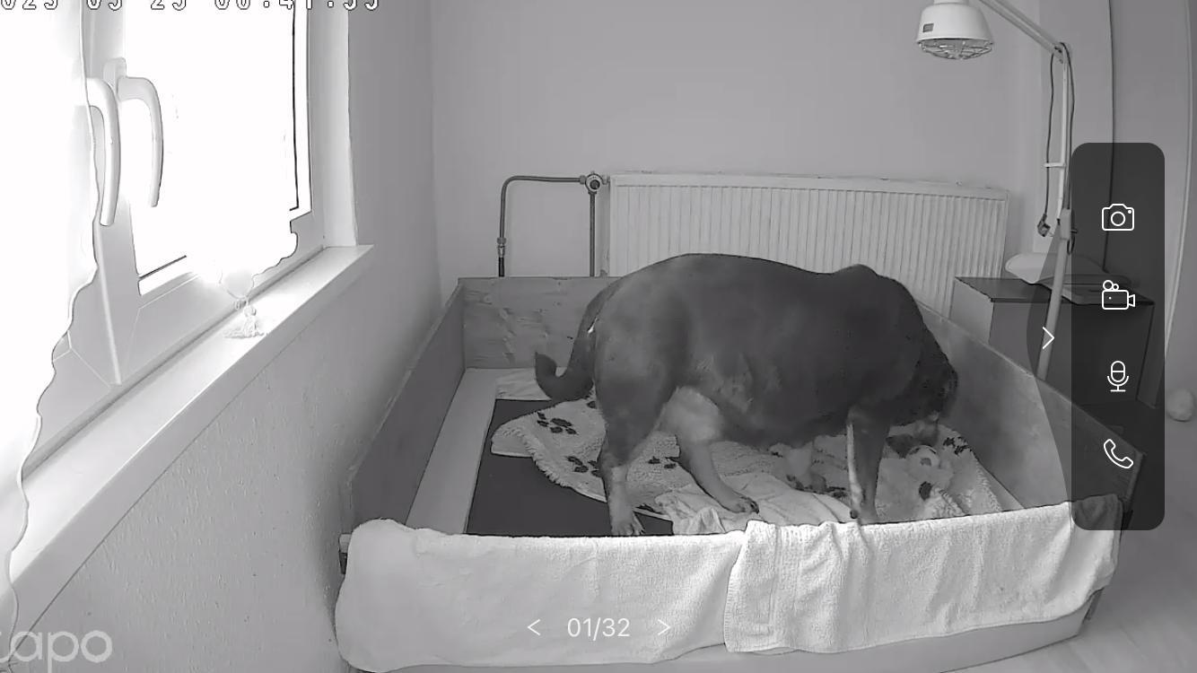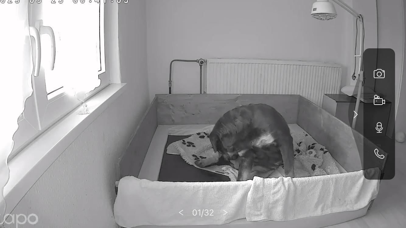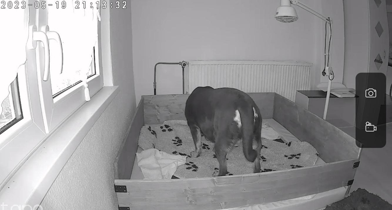 Die vergangene Nacht war sehr unruhig. Dasha ist permanent rumgewandert, hat viel gehechelt und sie hat erstmalig die Decken gerückt . Auf Deutsch, Dasha hat bereits Senkwehen. Es wird Zeit die Wurfkiste aufzubauen,