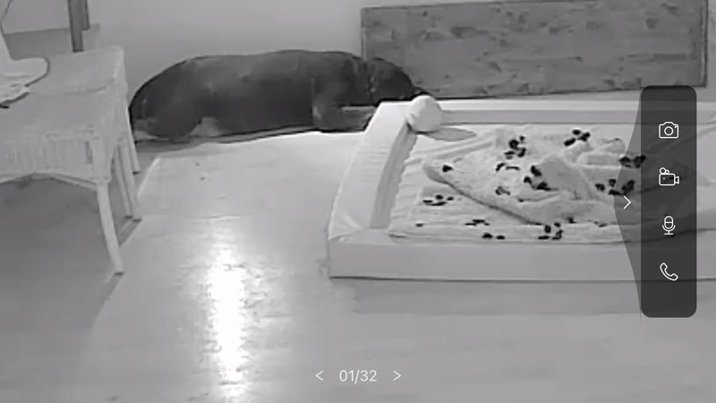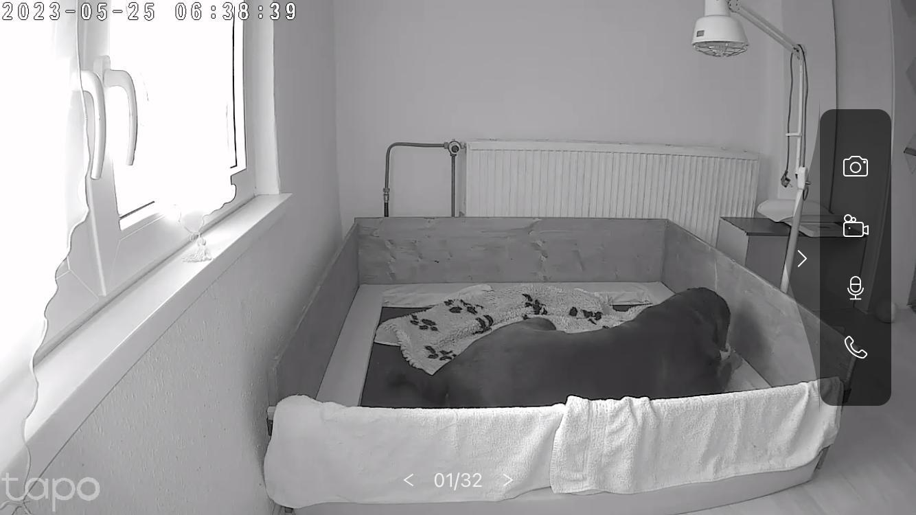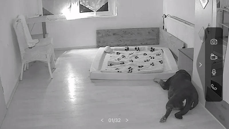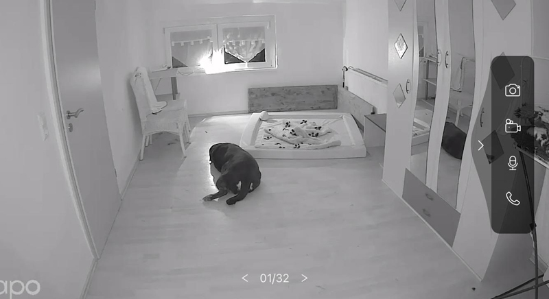 Im Welpenzimmer ist sie mittlerweile total relaxt, sie schläft viel und sie trinkt viel.