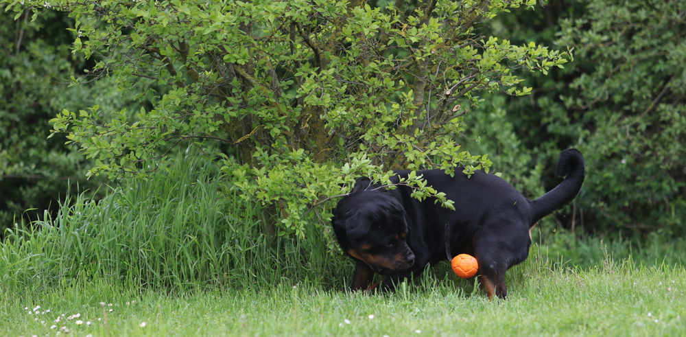 Trotz alledem hat sie weiterhin Lust auf ihr Spielzeug, ich werfe es ihr nur eben jetzt nicht mehr.