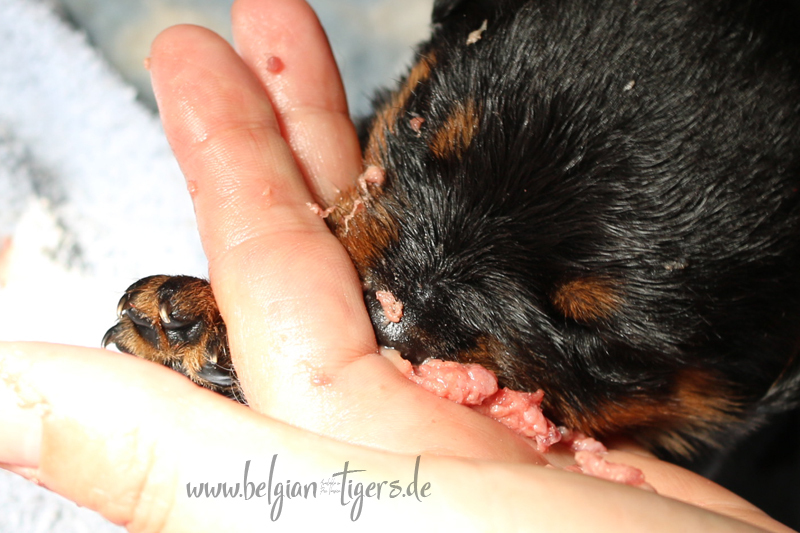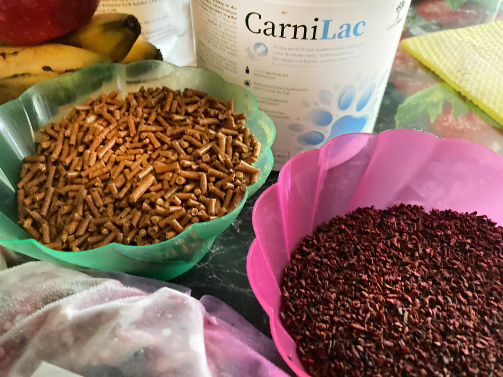Zwischendrinn gibt es alle 3 Stunden ein bisschen Welpenmilch von CarniLac.