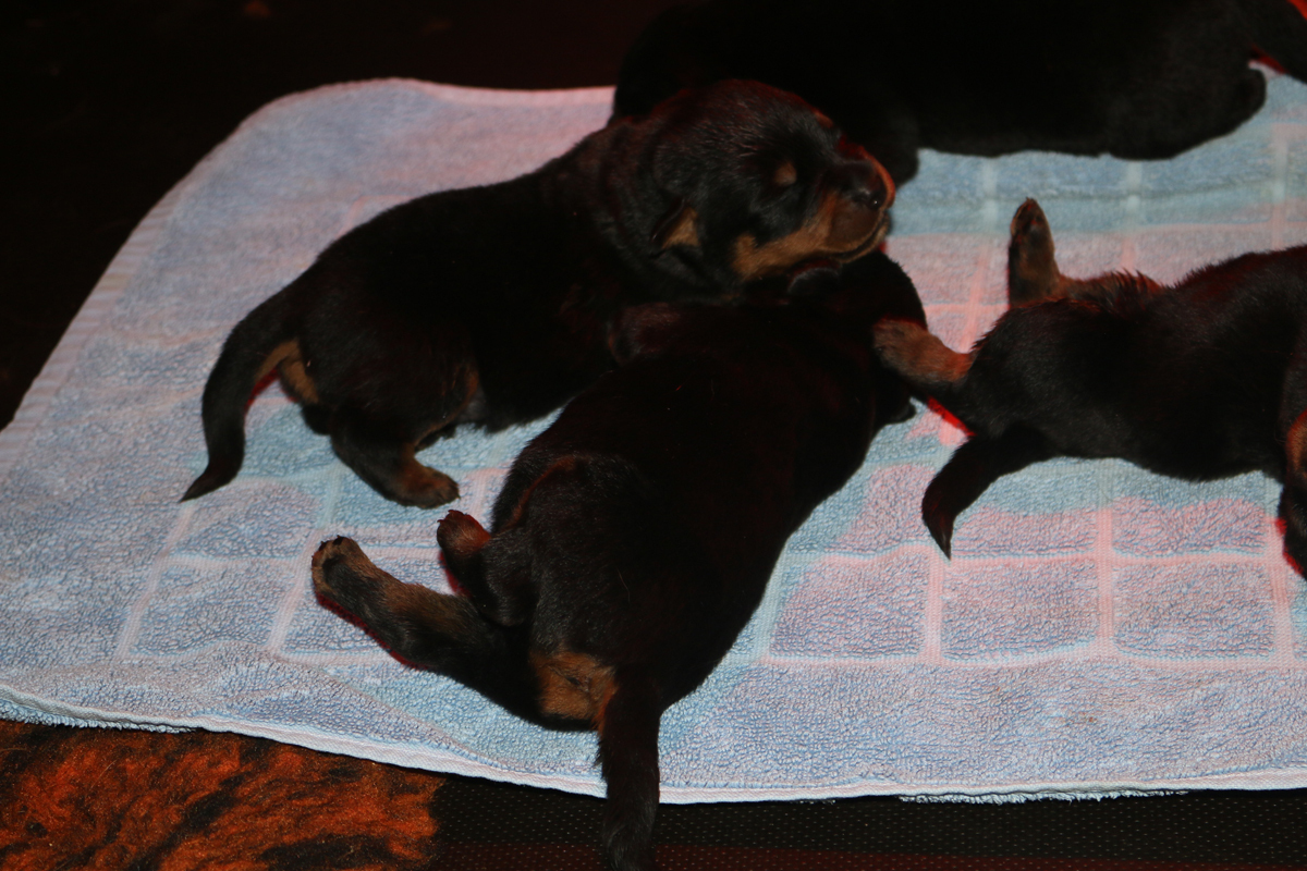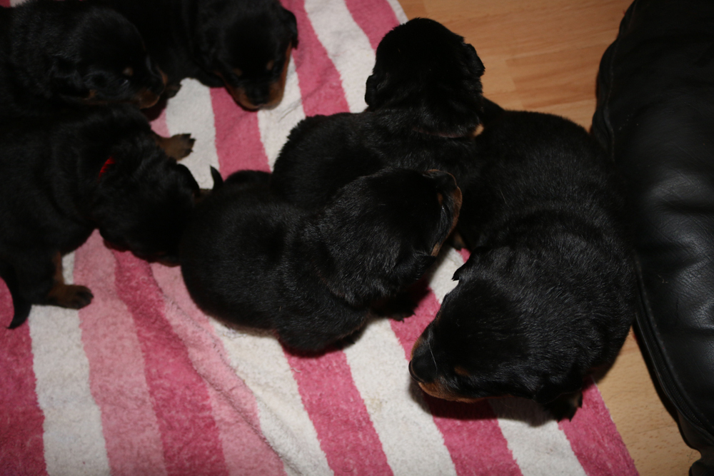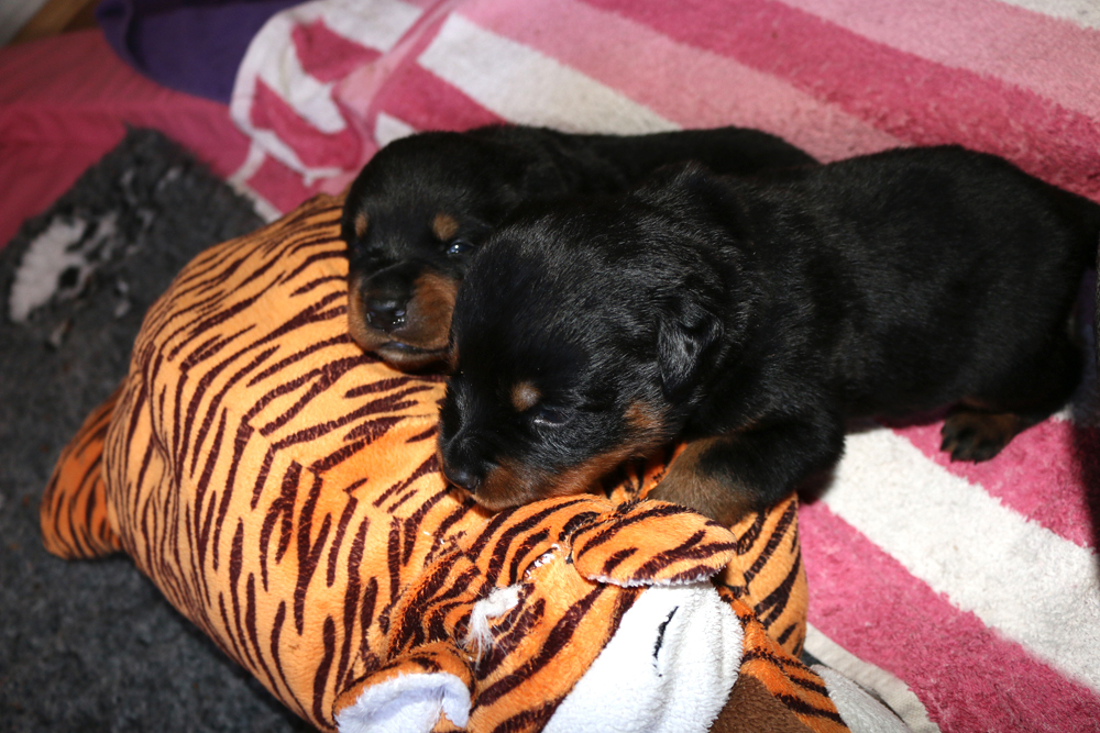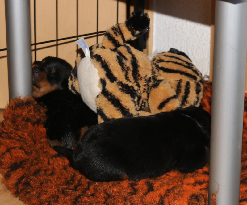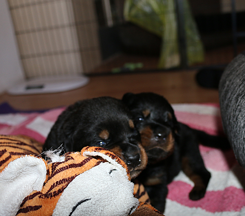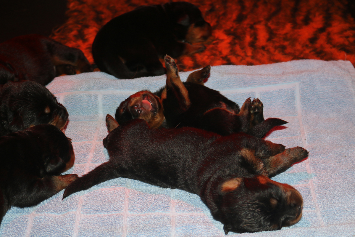Unsere Zuchtwartin war sehr zufrieden und konnte bescheinigen das alles dran ist ist, was dran gehört. Die Babys haben ALLE ein ordentliches Welpengebiss, die Burschen haben ALLE zwei kleine Murmeln♥ ,