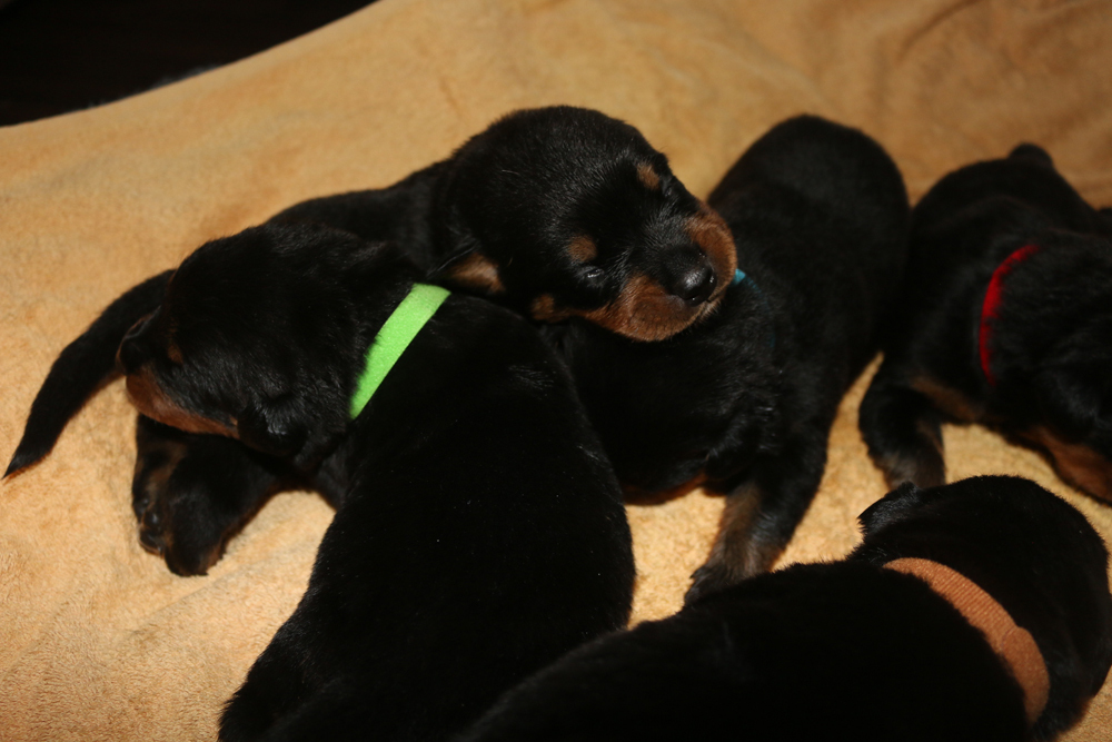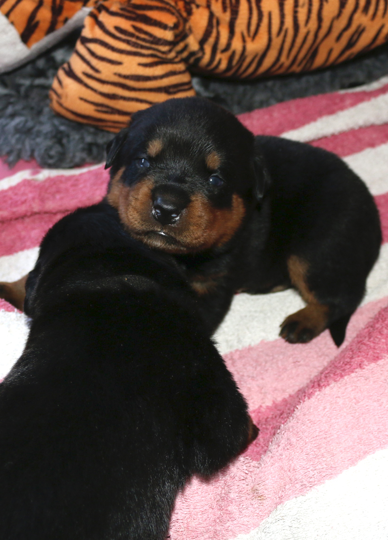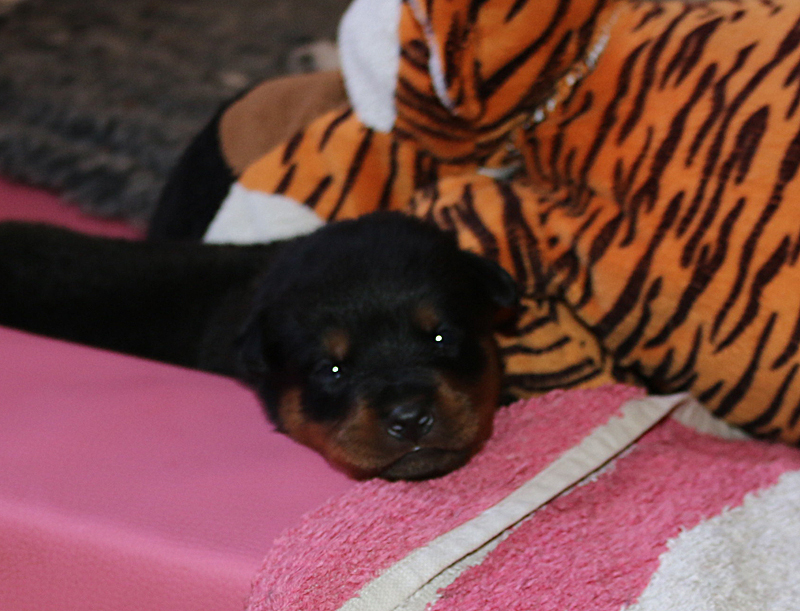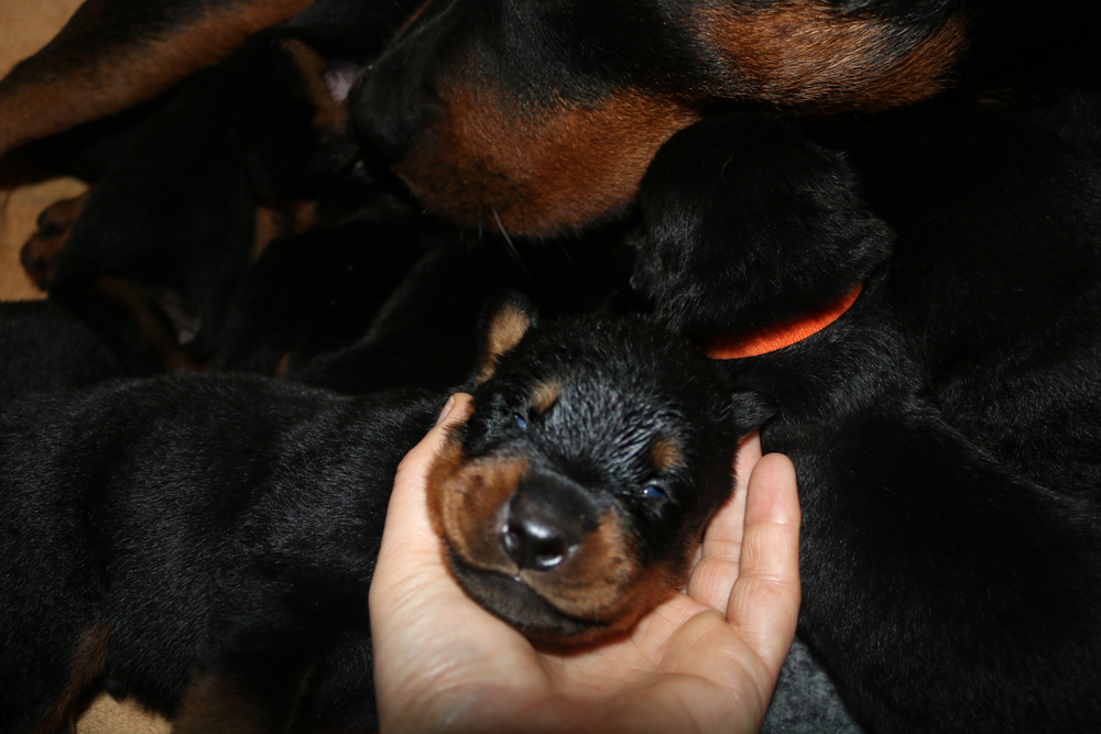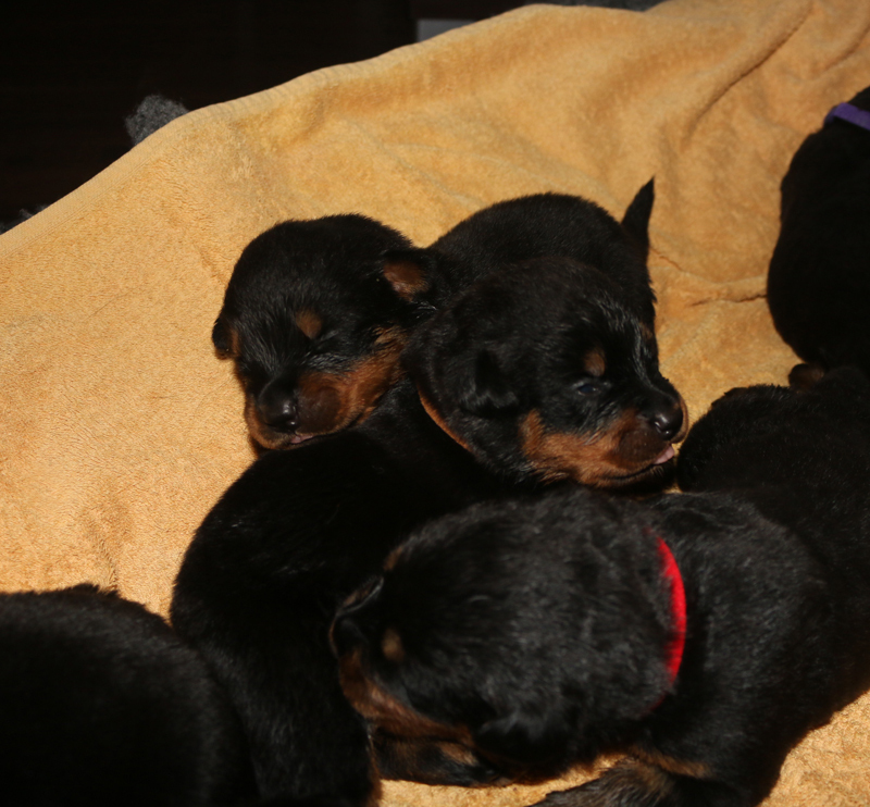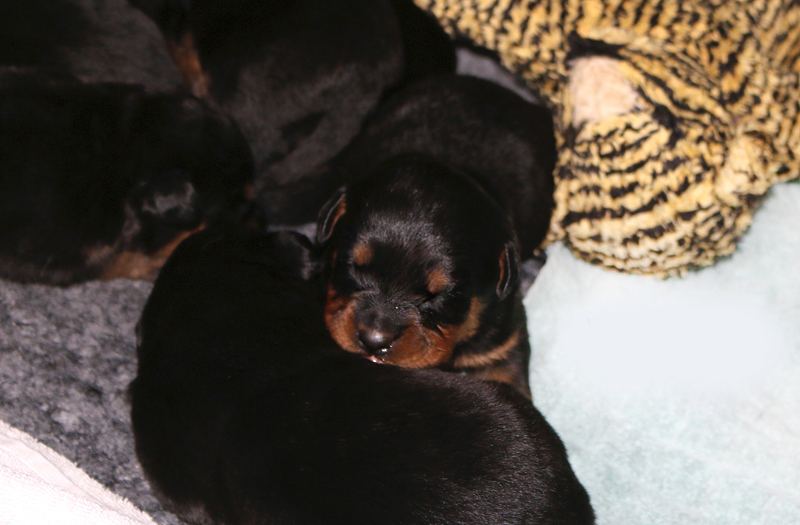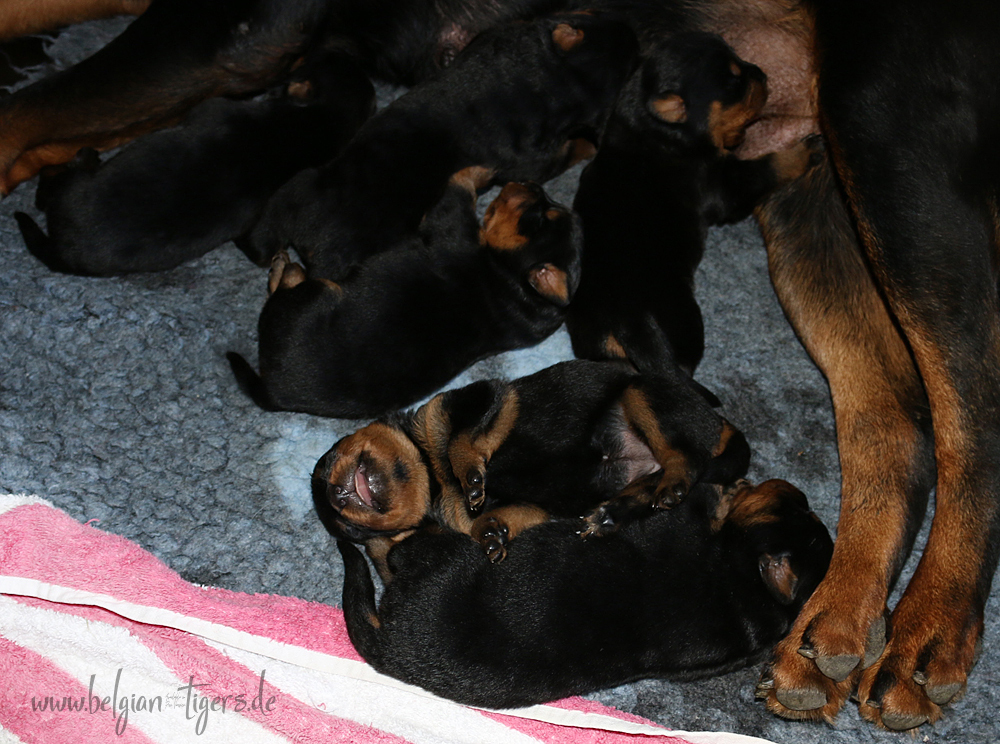 Unsere Zuchtwartin war sehr zufrieden und konnte bescheinigen das alles dran ist ist, was dran gehört. Die Babys haben ALLE ein ordentliches Welpengebiss, die Burschen haben ALLE zwei kleine Murmeln♥ ,