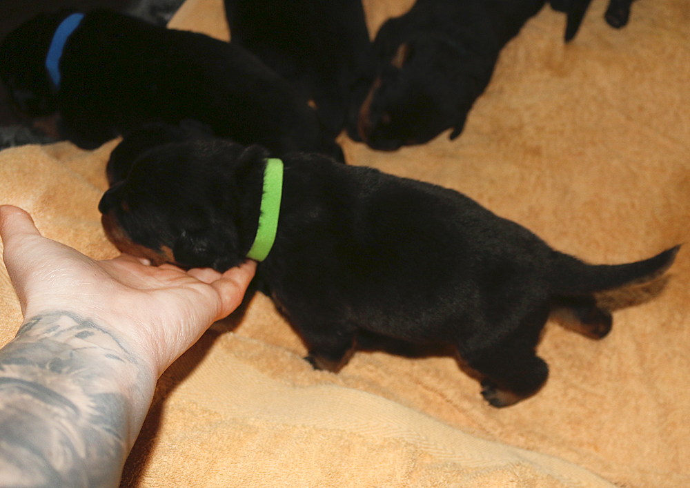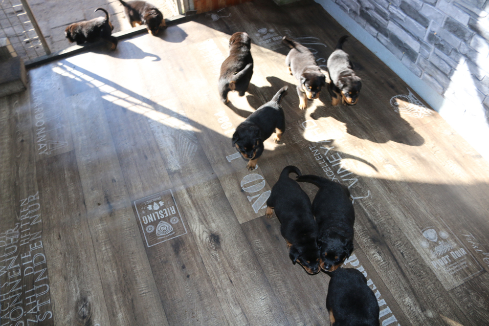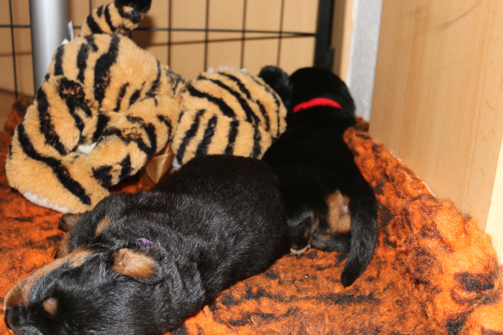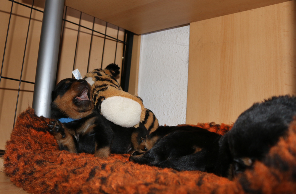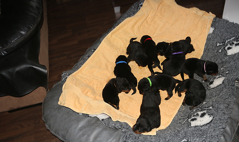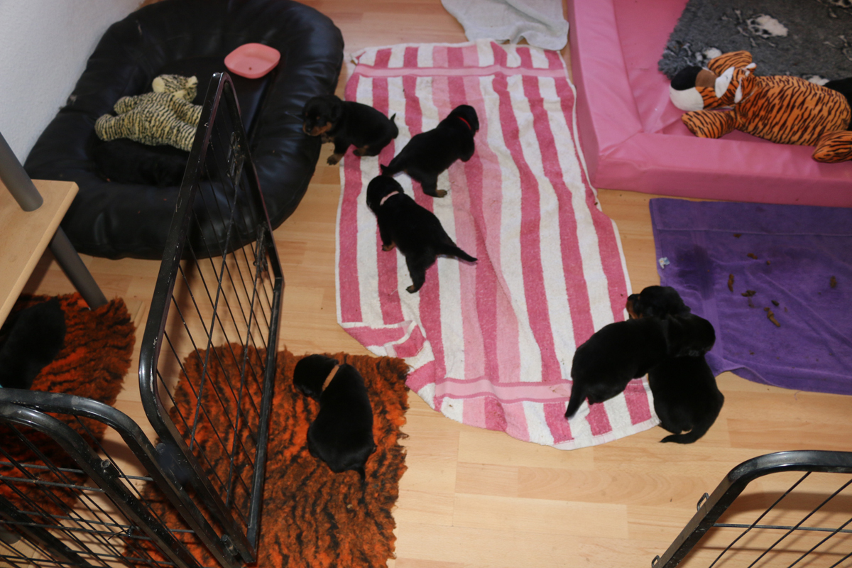 Gestern war unsere ADRK Landesgruppen Zuchtwartin zur Erstkontrolle hier um unsere 10 kleinen Tiger zu begutachten.