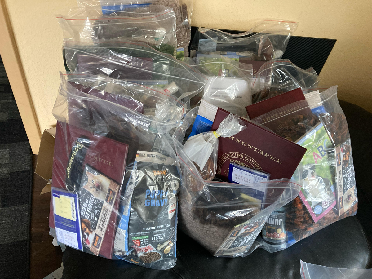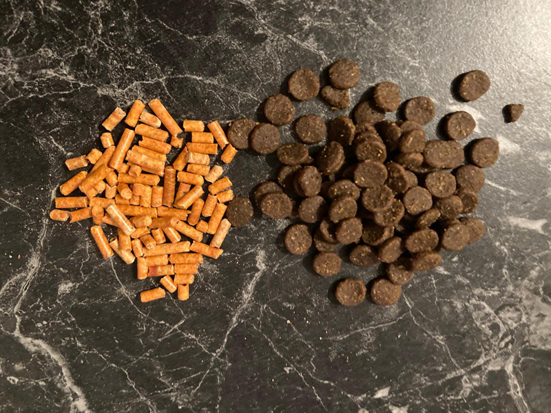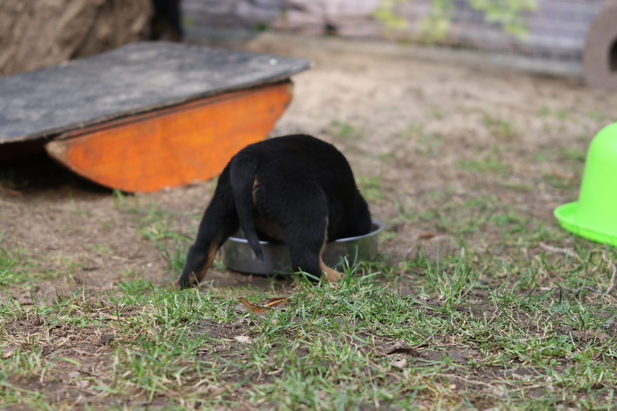 Ein anderes Mal bekommen sie das Trockenfutter leicht eingeweicht mit lauwarmen Wasser, Möhrenpellets und Öl oder ich verstecke die Trockenfutterkugeln im Welpenauslauf. Manchmal gebe ich ihnen auch mal ein paar Kugeln aus der Hand.