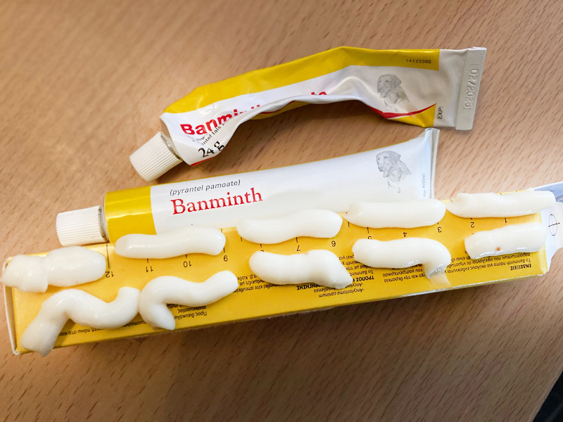 Cleo bekommt heute Abend auch gleich eine Wurmkur und dann haben wir für 2 Wochen Ruhe.