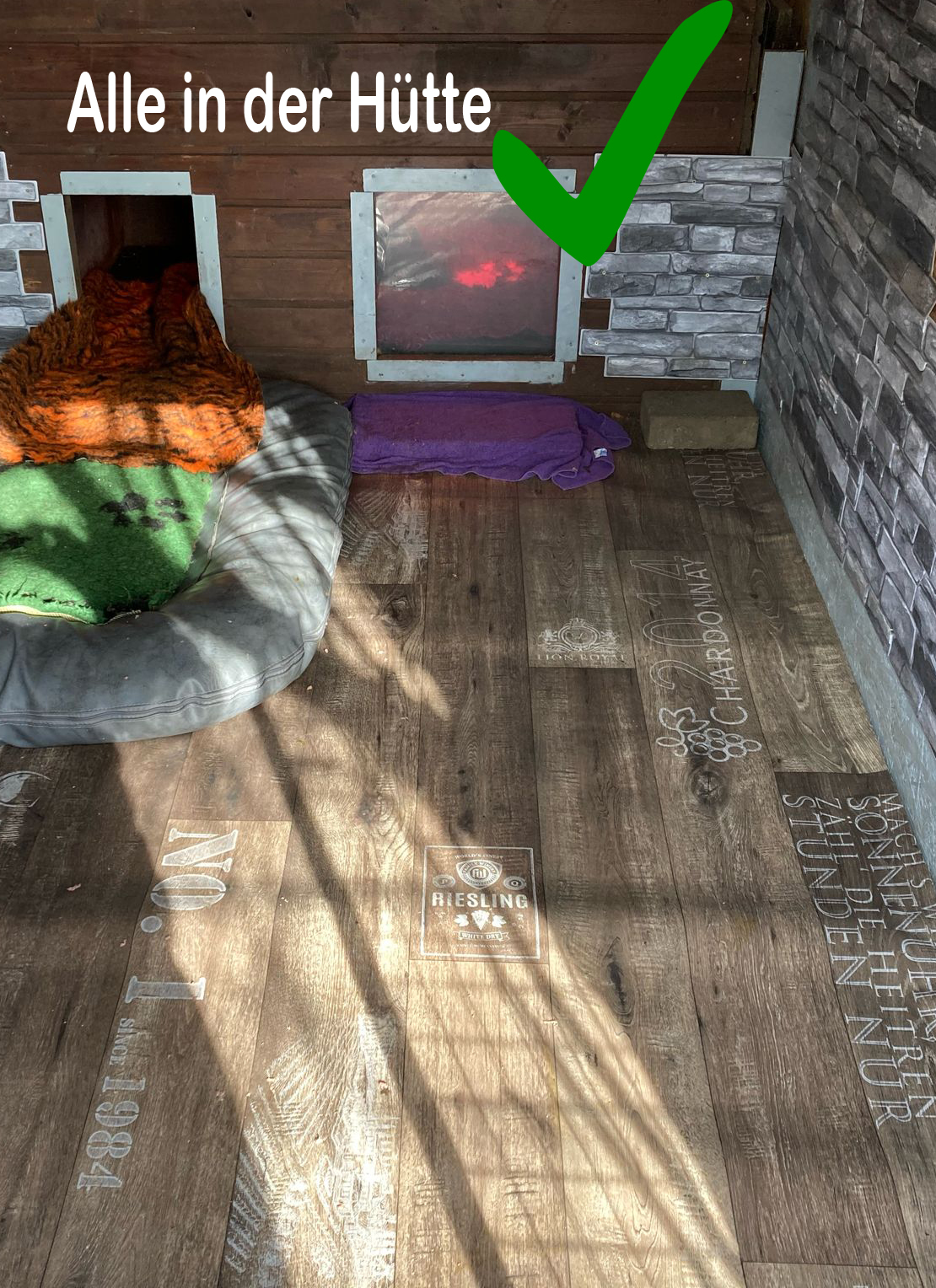 Natürlich in der Hütte, direkt unter der Rotlichtlampe