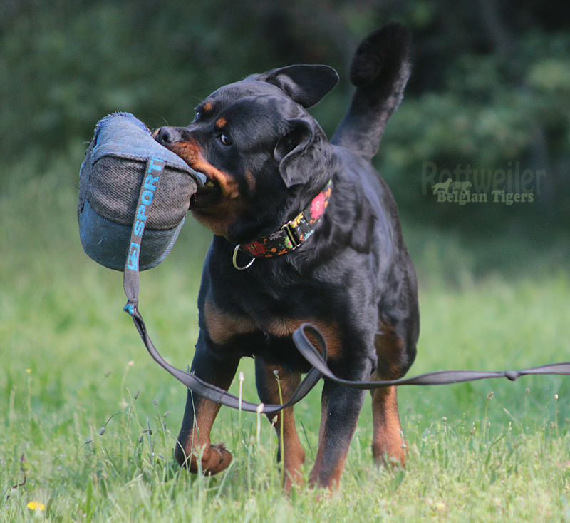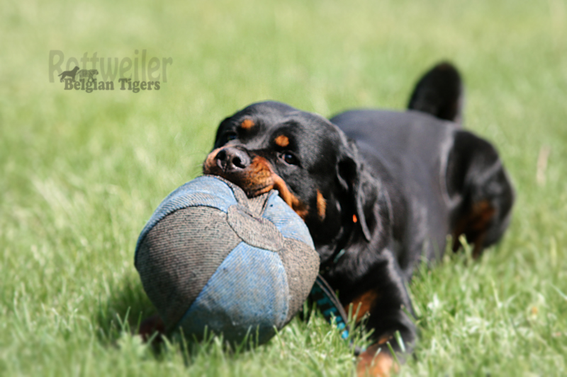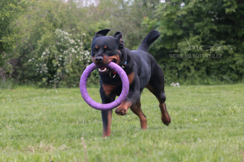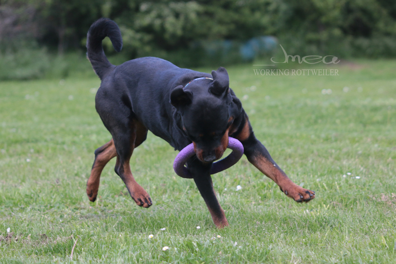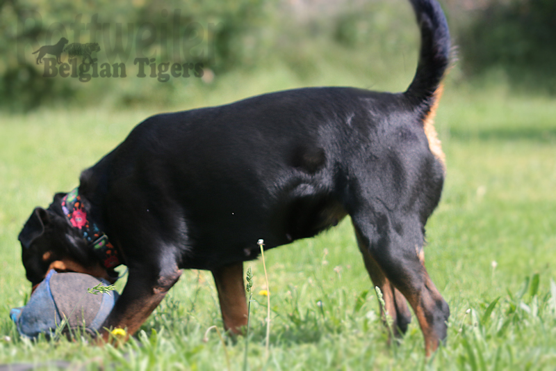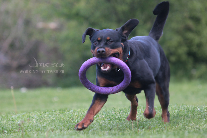 Zur Nacht bleibt sie ab sofort unten im Wurfzimmer - mittlerweile ein Lieblingsplatz von ihr, der vollgeballert ist mit massig Spielzeug.