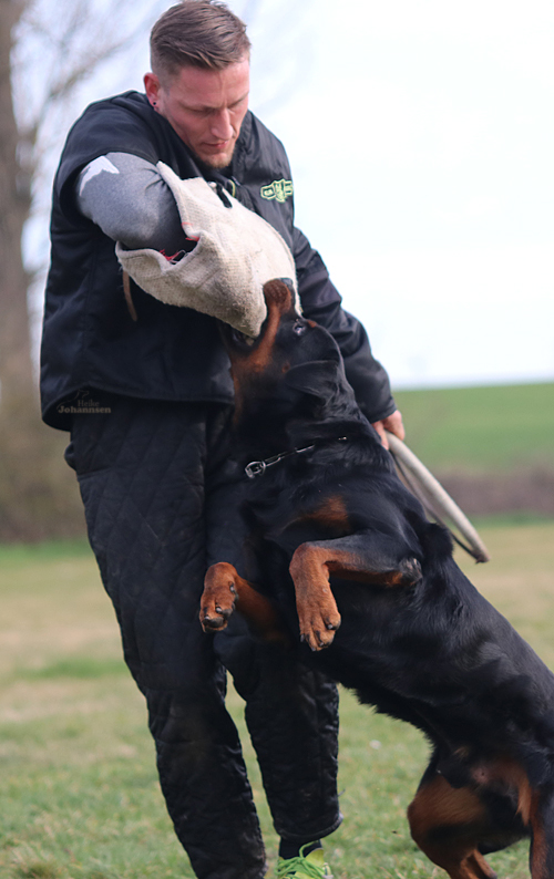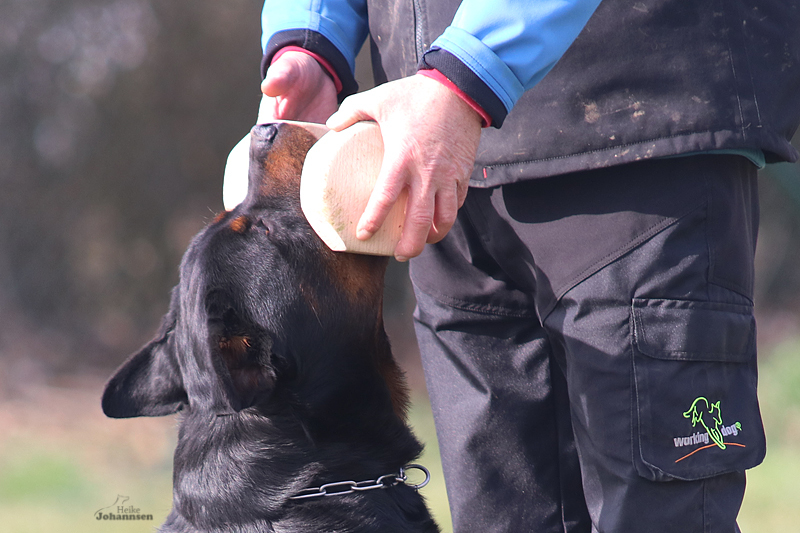 Sein ganz spezielles Talent liegt in der Fährte | seine Nase ist brilliant - er hat eine Hammerzielstrebigkeit und tut einfach alles um ans Ziel zu kommen. Im Schutzdienst arbeitet er beuterorientiert - zeigt sich führig, bei ordentlichen Griffen.