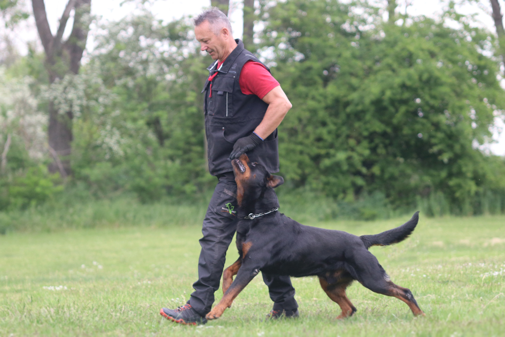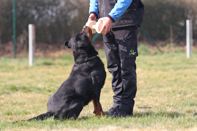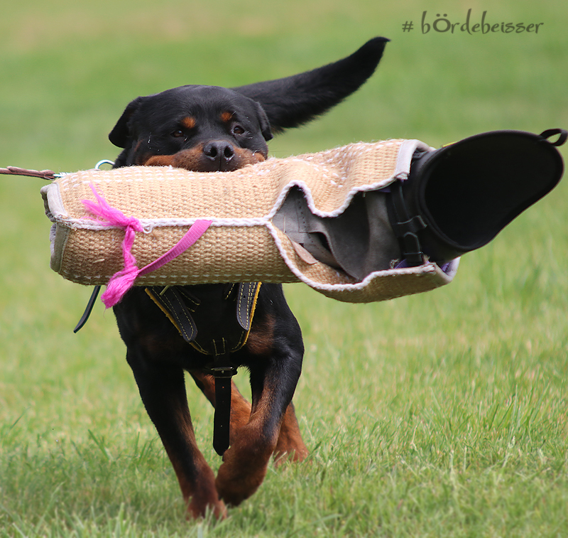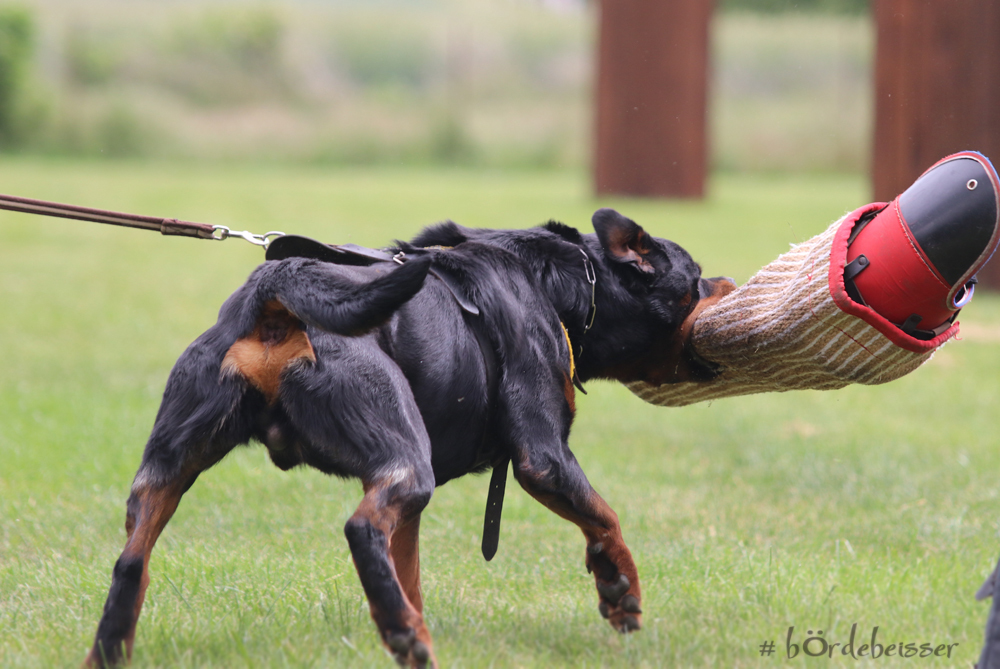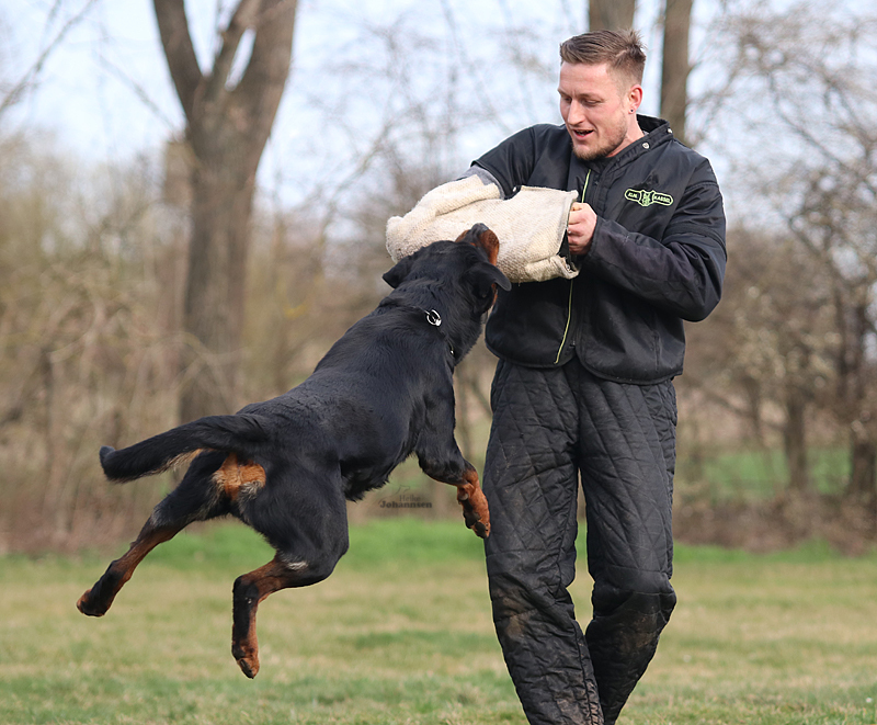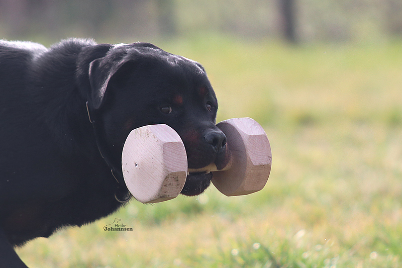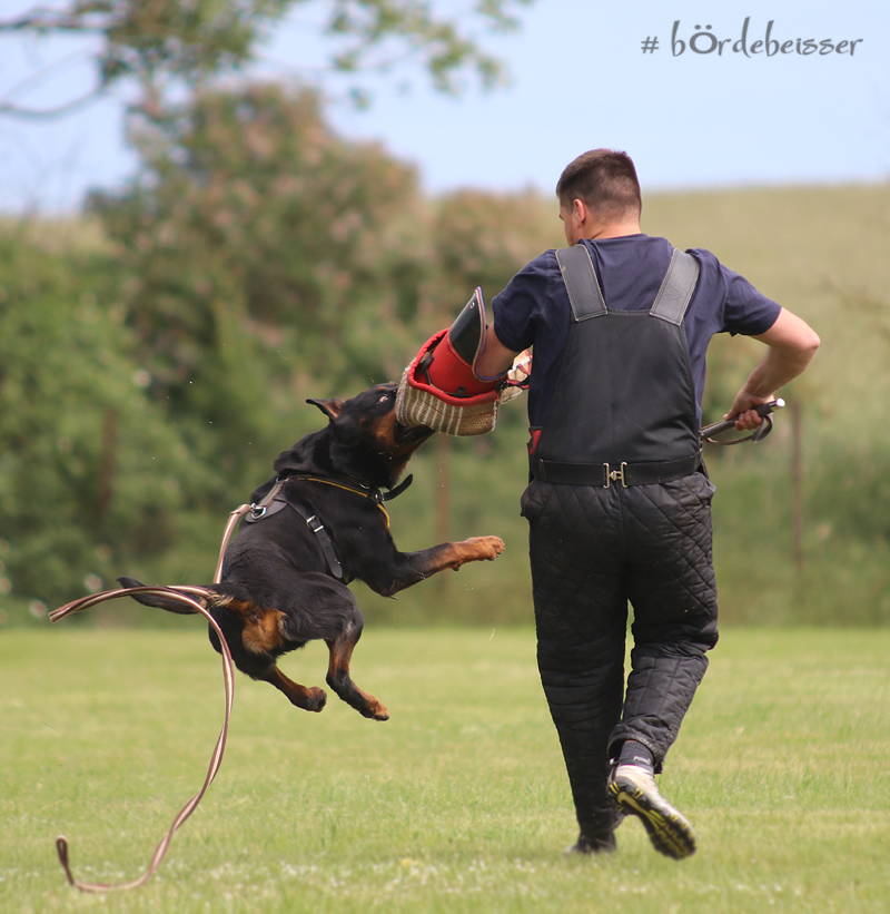 Er hat einen ordentlichen Spiel-und Beutetrieb im Gepäck, zudem ist er sehr gut regelbar in der Beuteerwartung. In der Unterordnung ist er gut motiviert, sehr gut beweglich mit einem tollen Sprungvermögen.