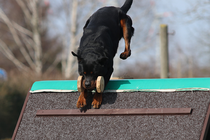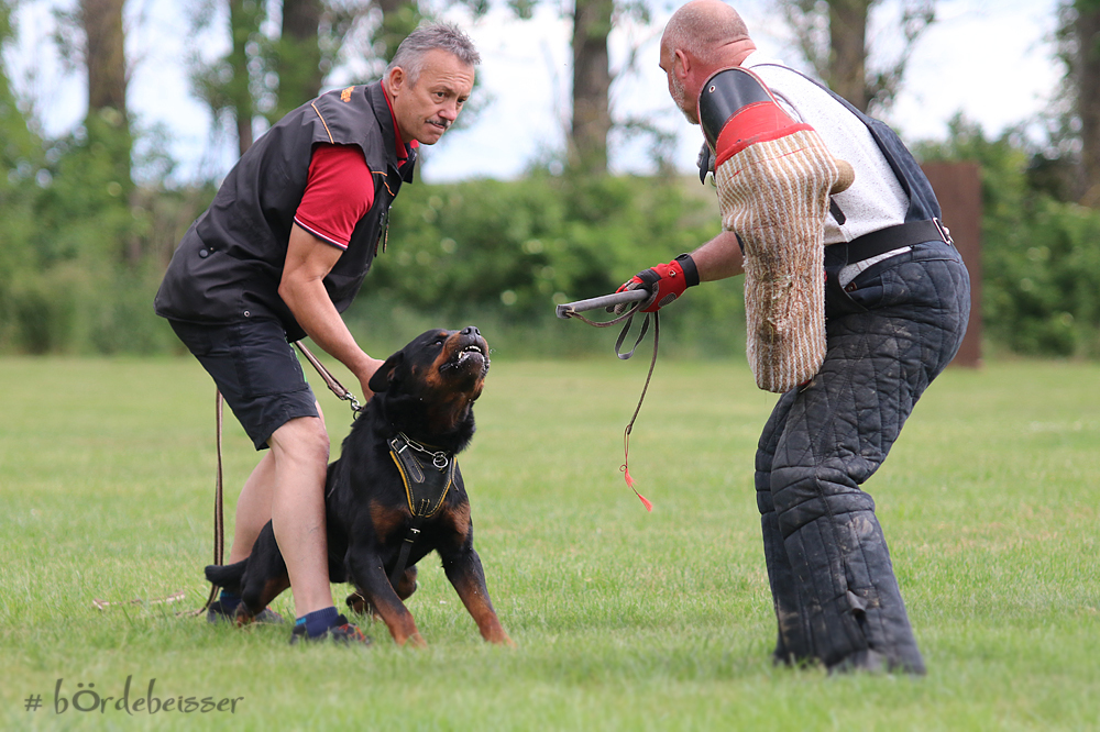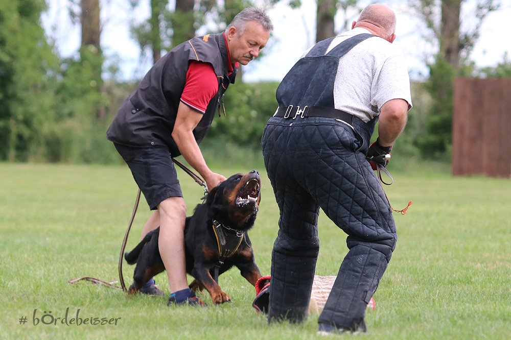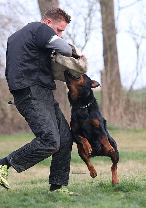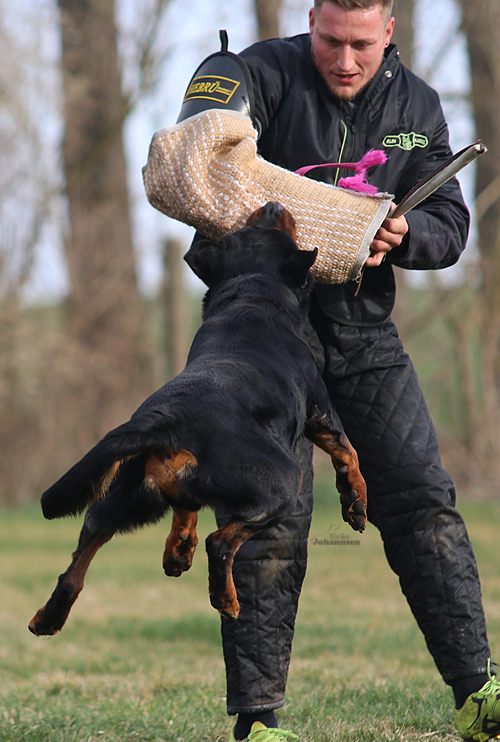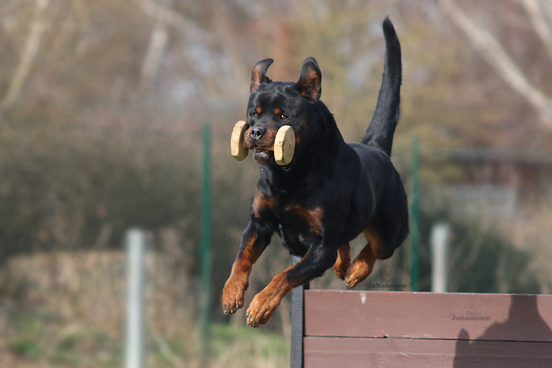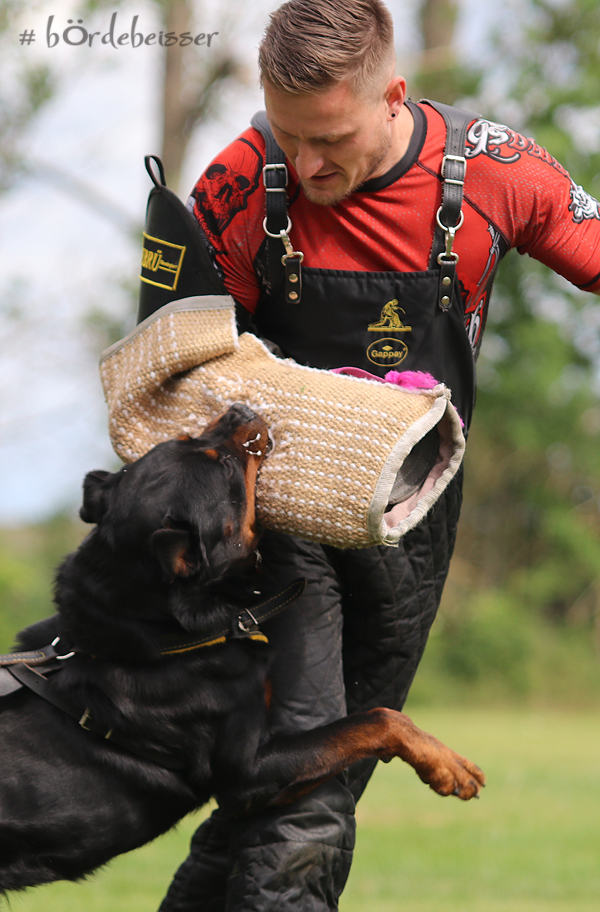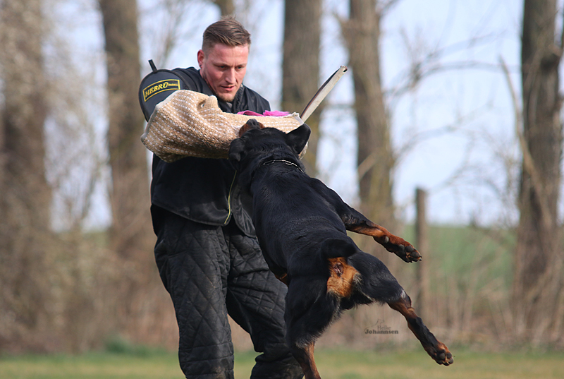 Er hat einen ordentlichen Spiel-und Beutetrieb im Gepäck, zudem ist er sehr gut regelbar in der Beuteerwartung. In der Unterordnung ist er gut motiviert, sehr gut beweglich mit einem tollen Sprungvermögen.