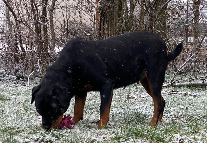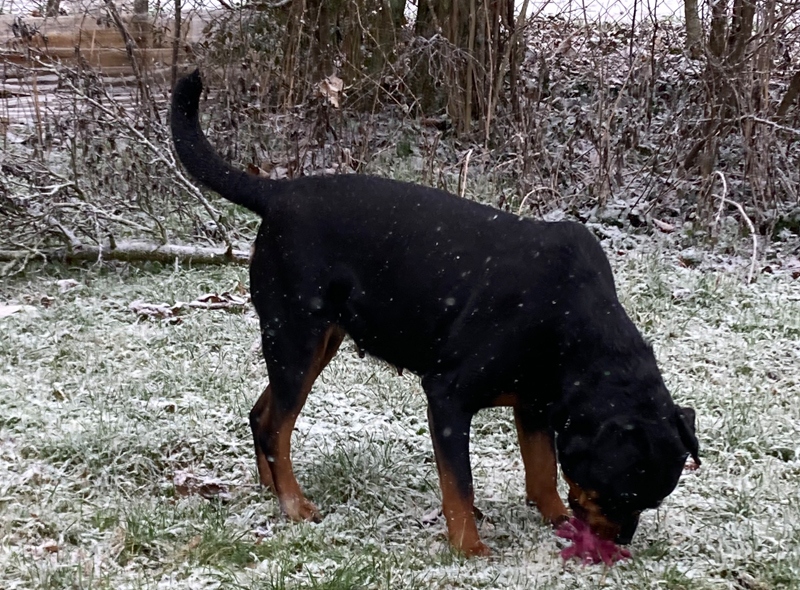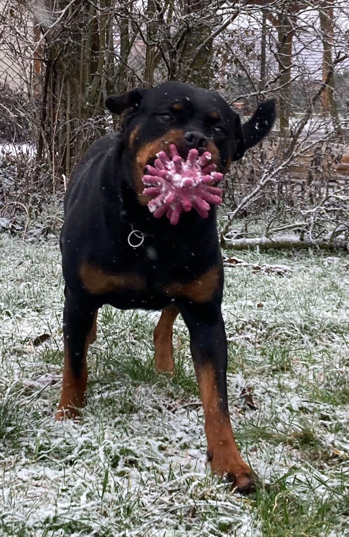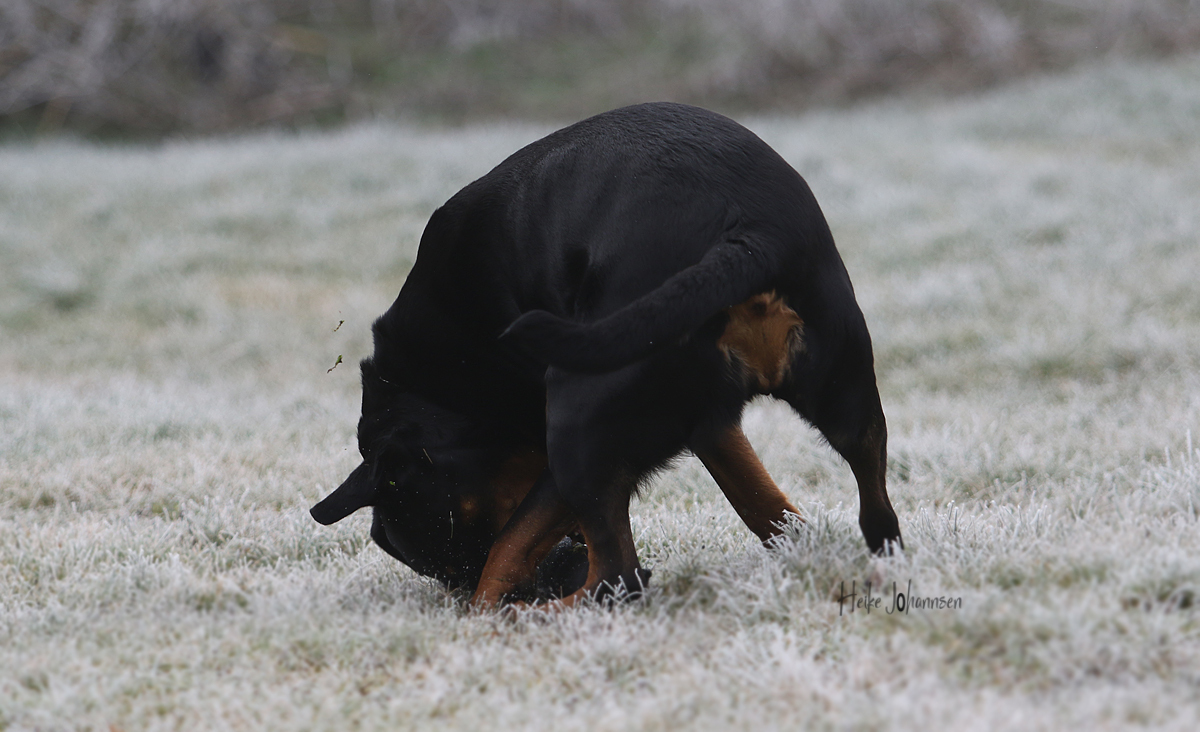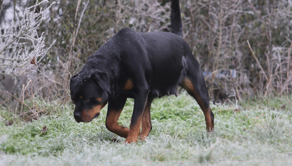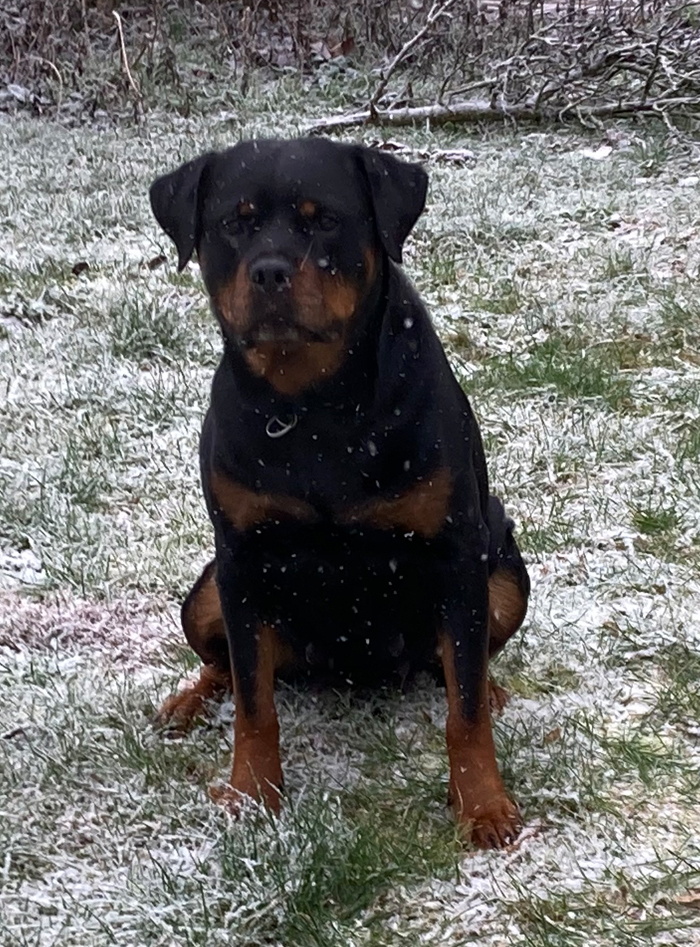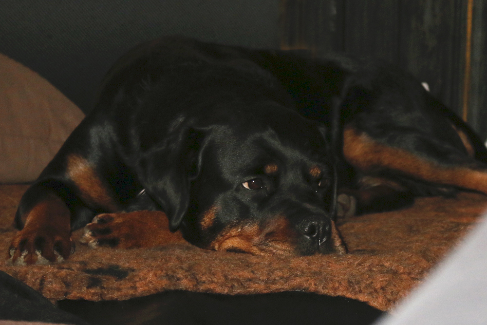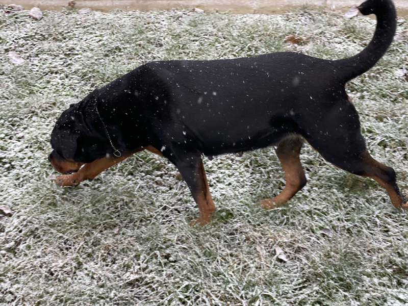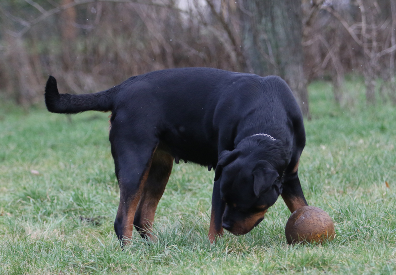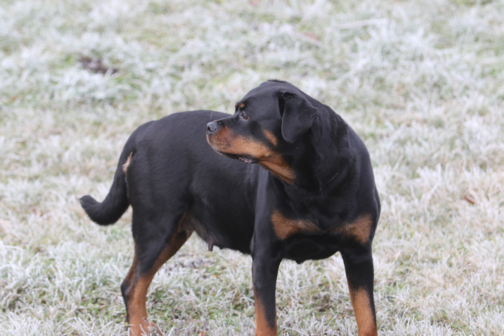 Zudem erweckt sie den Anschein, als würde sie gleich verhungern. Man muss echt aufpassen mit der Futtermenge, Rotties werden ja mega schnell fett und das ist alles andere als gut. Wenn ich sie jetzt lassen würde, wie sie möchte, futtert sie ohne aufzuhören.