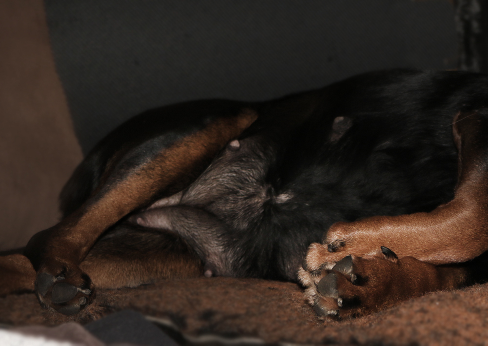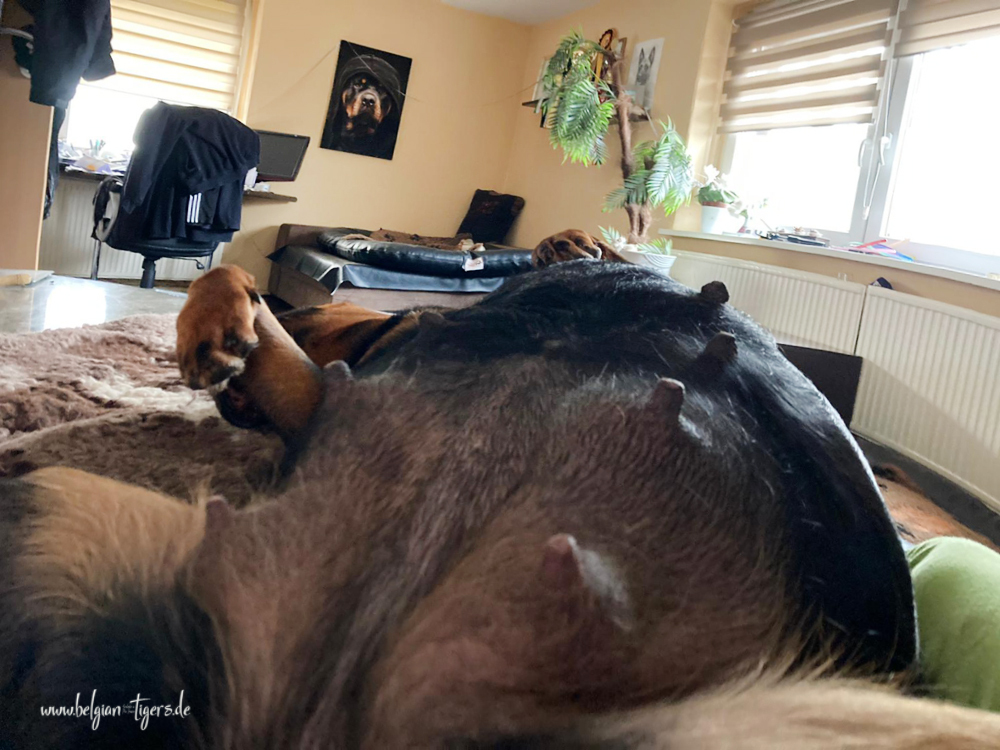 Gegen 4 Uhr hat Loonie wieder angefangen zu hecheln und aus dem Gesäuge tropft jetzt Milch.