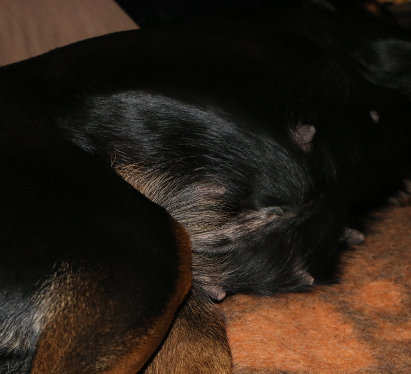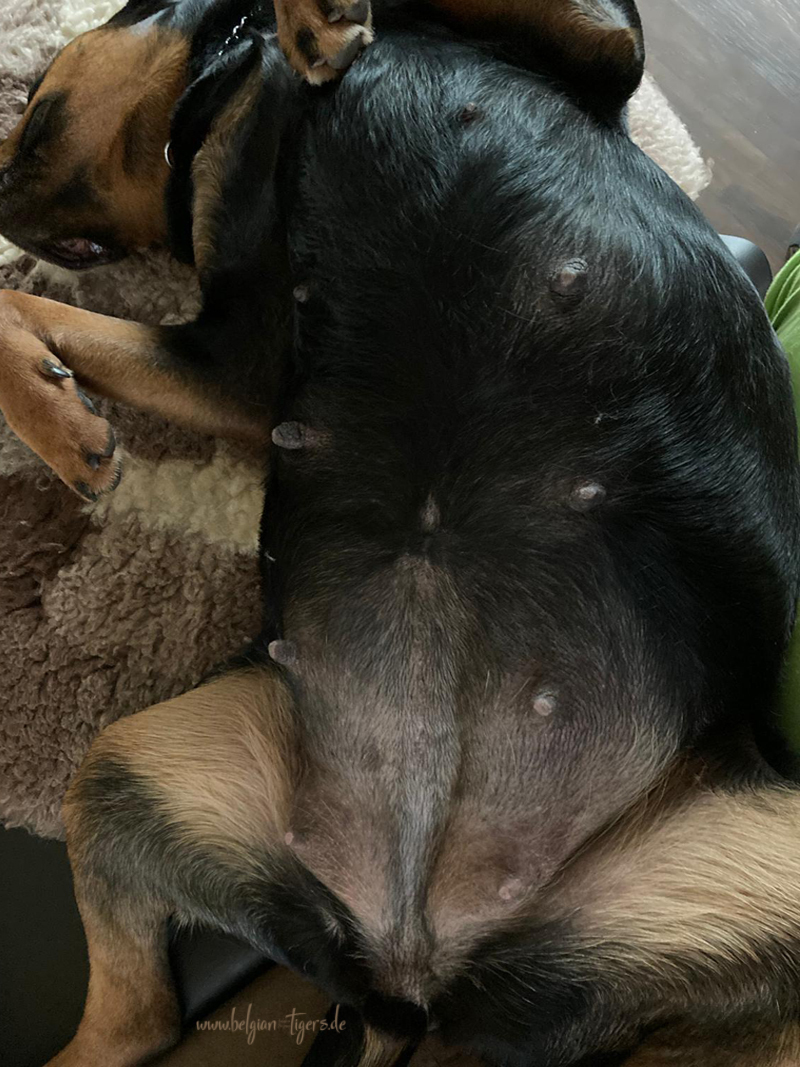 Loonies Zitzen bzw 7 ihrer Zitzen, stehen stramm nach oben und sie sind leicht rötlich. Ansonsten merkt man erstmal nicht viel, ausser das sie deutlich aufdringlicher ist und sie hat permanent HUNGER. #Optimismus_macht_sich_breit