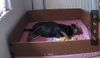 Es bleibt also weiter spannend. Ab heute schlafen wir beide zusammen oben. Mittlerweile mag sie die Wurfkiste und entspannt komplett,