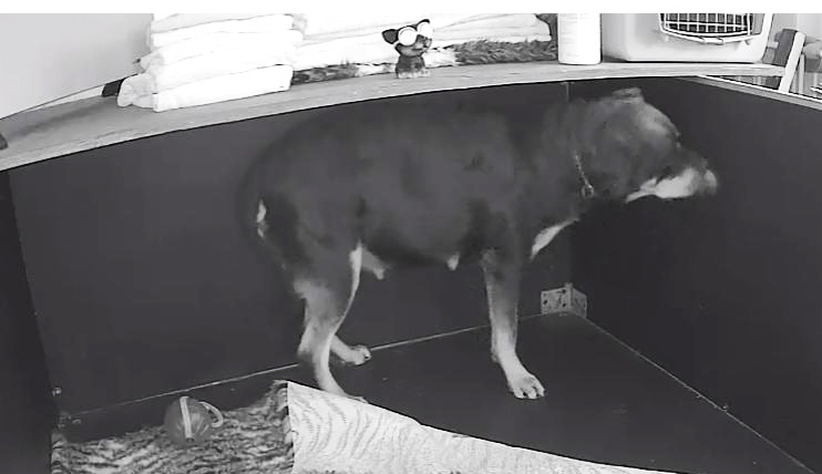 Gestern habe ich dann auch ihr Hundebett rausgenommen, meistens fangen die Hündinnen schon mehrere Tage vor der Geburt an, ihr Nest zu bauen. Dann kratzen und scharren sie recht ordntlich. Das Hundebett würde sowas nicht wirklich überleben, also kommt es raus.