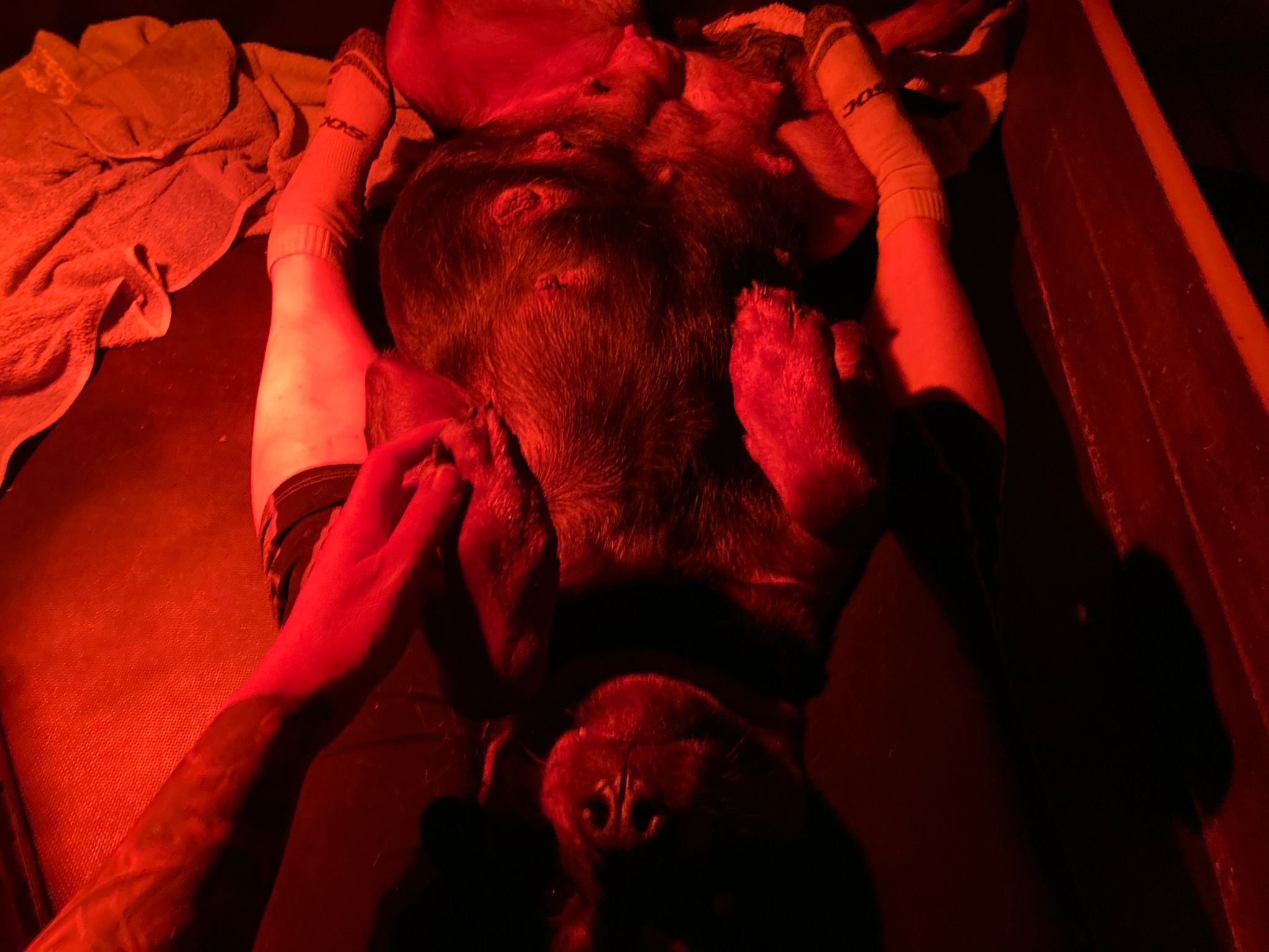 Jetzt waren wir einmal kurz draußen, Cleo hat was getrunken und danach mußte ich unbedingt den immernoch ein bisschen dicken Bauch kraulen und jetzt kann es weiter gehen.