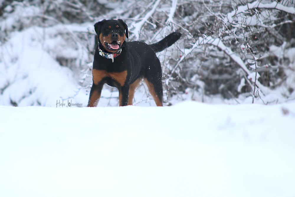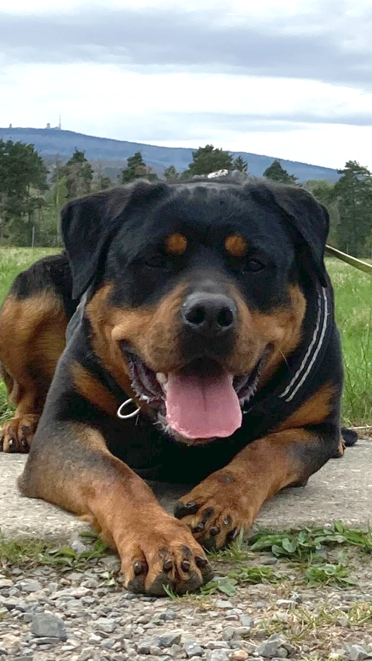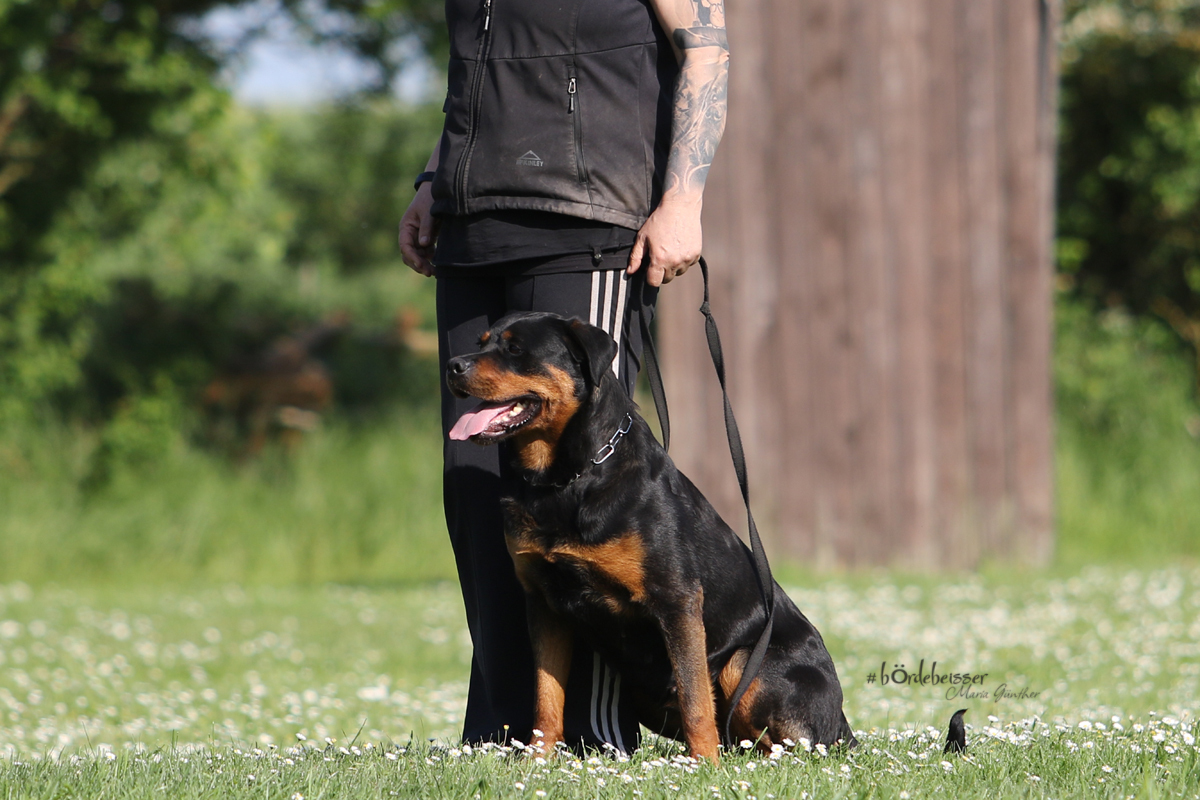 Mit fremden Menschen ist sie nach kurzem Kennenlernen aufgeschlossen und freundlich. Bei fremden Hunden bleibt sie passiv, im eigenen Rudel ist sie nett und nicht zum stänkern aufgelegt.