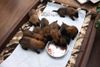 Die ersten zwei Wochen sind geschafft :-) Die Augen sind nun bei allen Welpen auf und ich habe festgestellt. dass die Minis auch schon auf Geräusche reagieren - sie schrapeln - niiiieeeedlich :-)