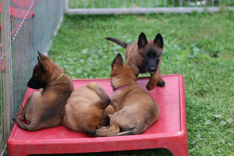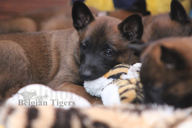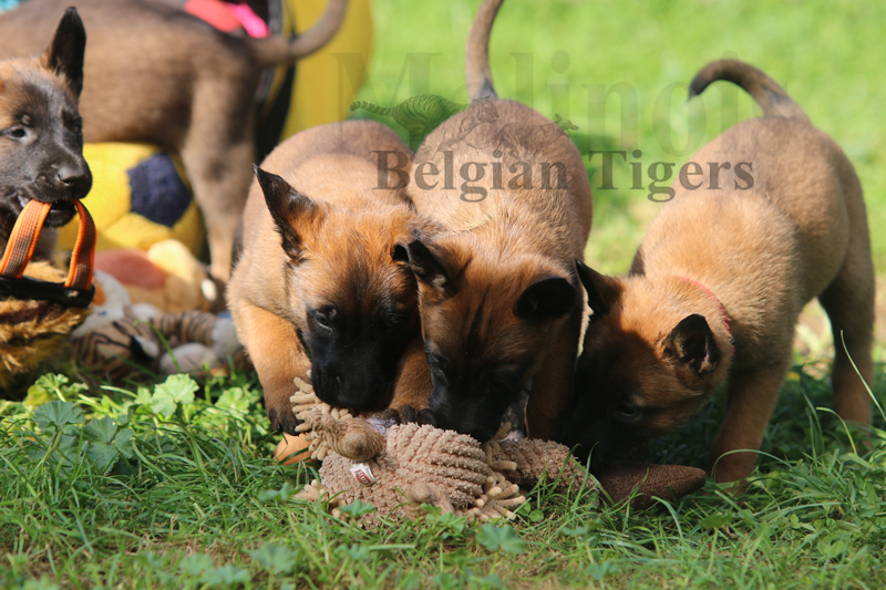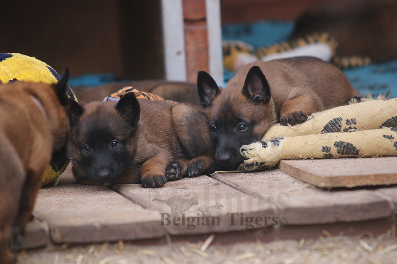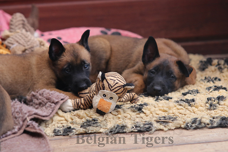 Alle malinoiden Tiger sind fit und rund, alle Buben sind ausgestattet mit je zwei kleinen Eiern :), alle Welpen haben ordendlich entwickelte Scherengebisse und alle sind recht lustig drauf und offen in alle Richtungen.