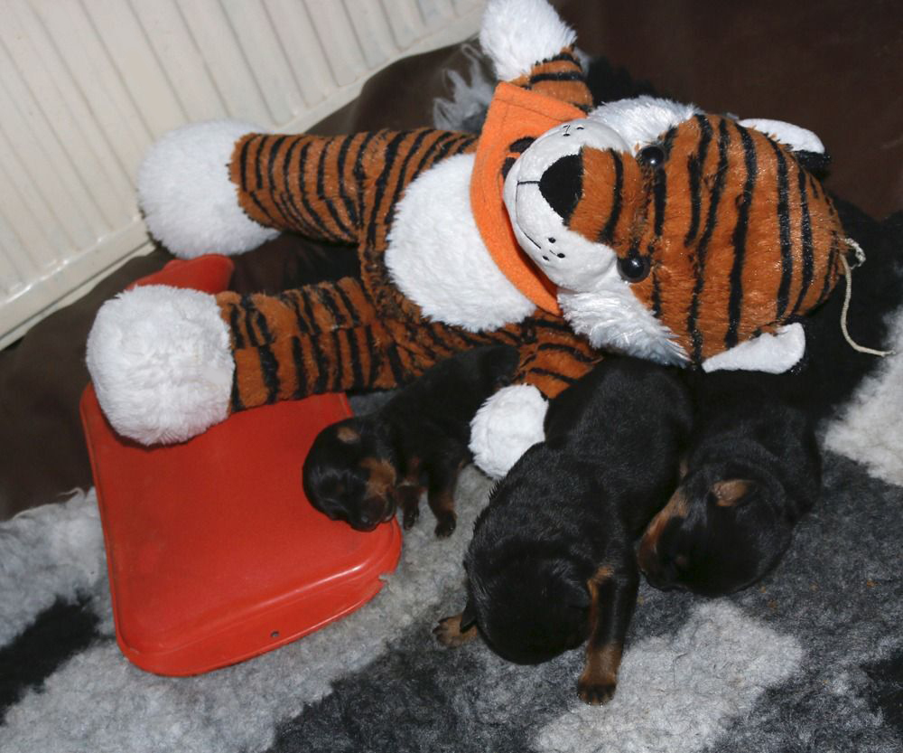Sollte die Mutter keine Milch haben oder die Welpen ohne Mutter aufwachsen, müssen wir als Züchter die Aufgaben der Mutterhündin übernehmen.