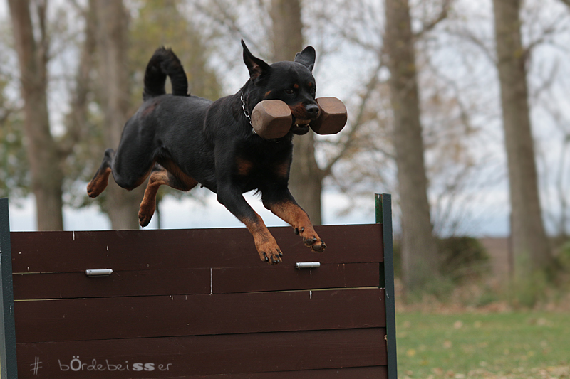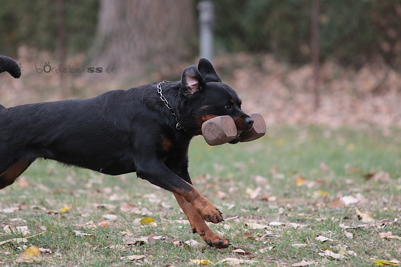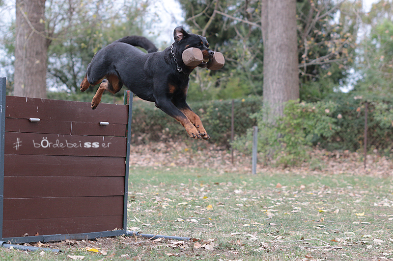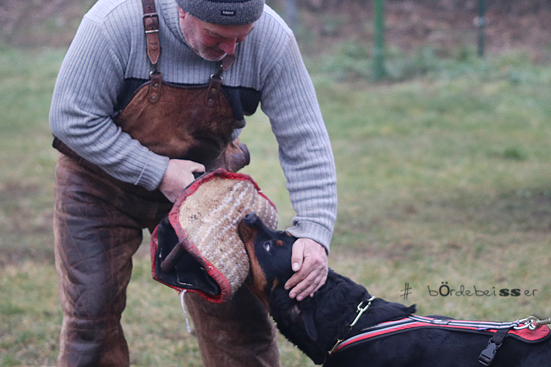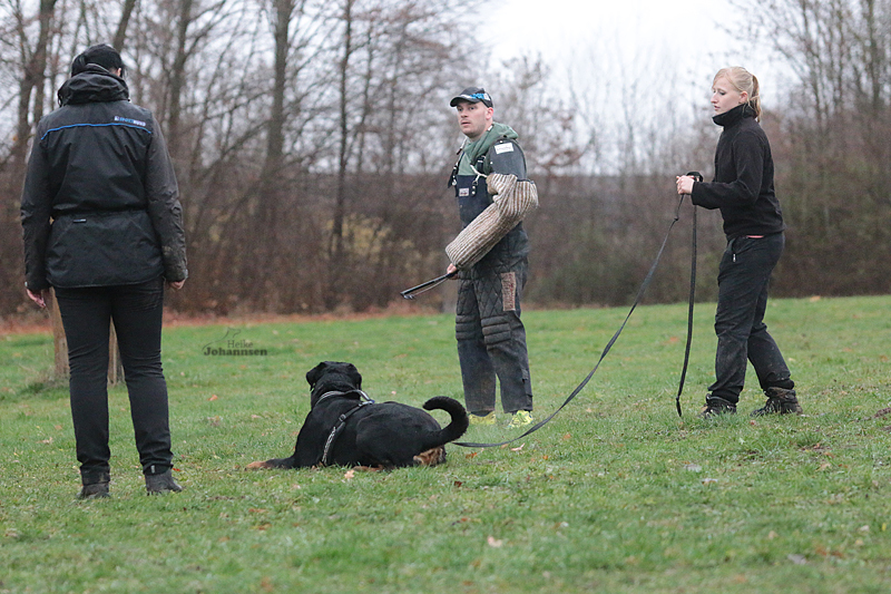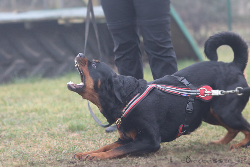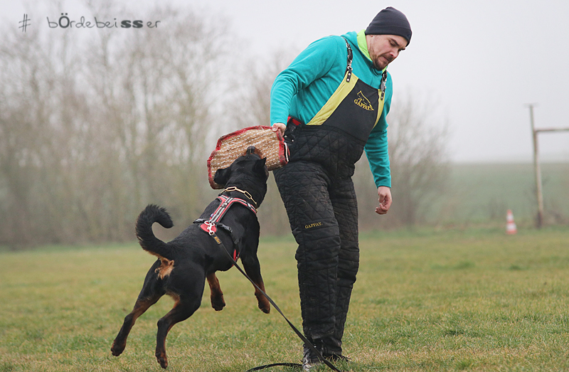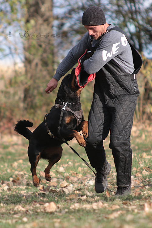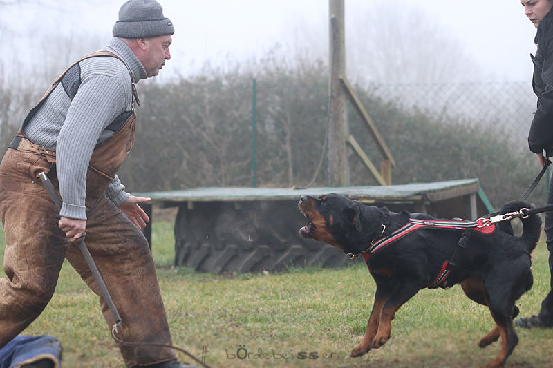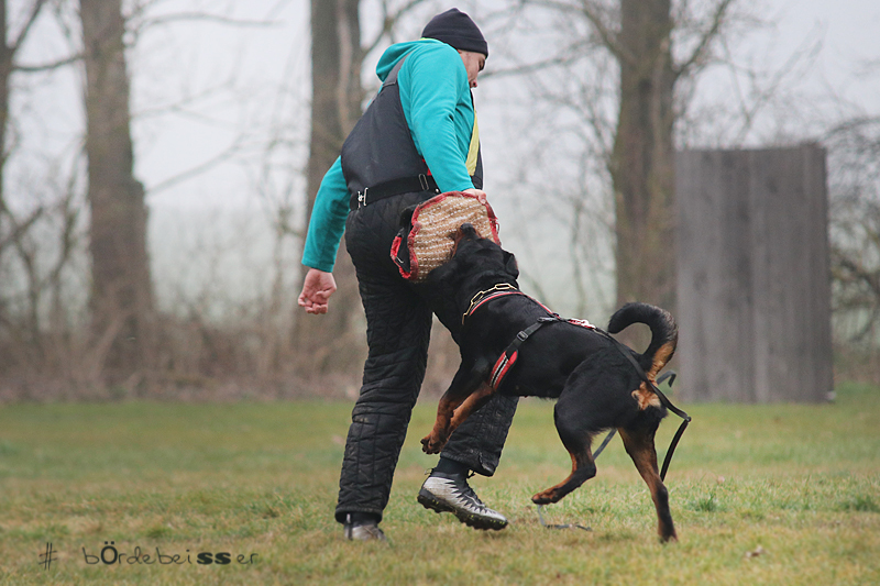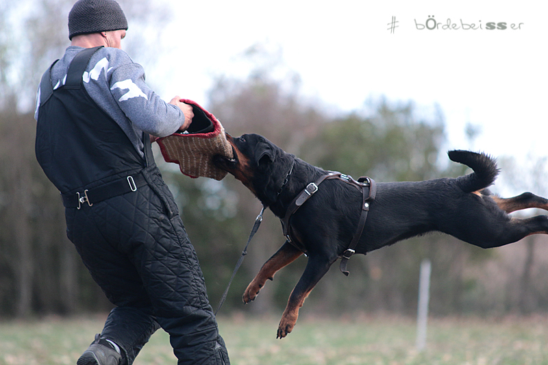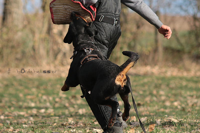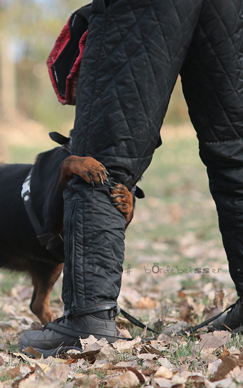 Im Schutzdienst zeigt sie ein gutes Griffverhalten und eine tolle Anbissgeschwindigkeit und bleibt auch in hohen Triebbereichen regelbar.