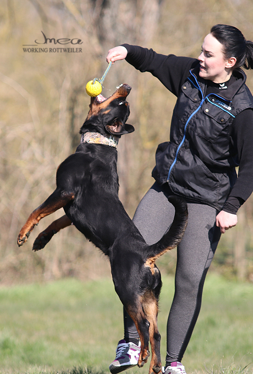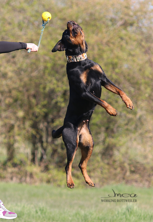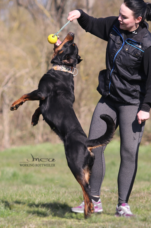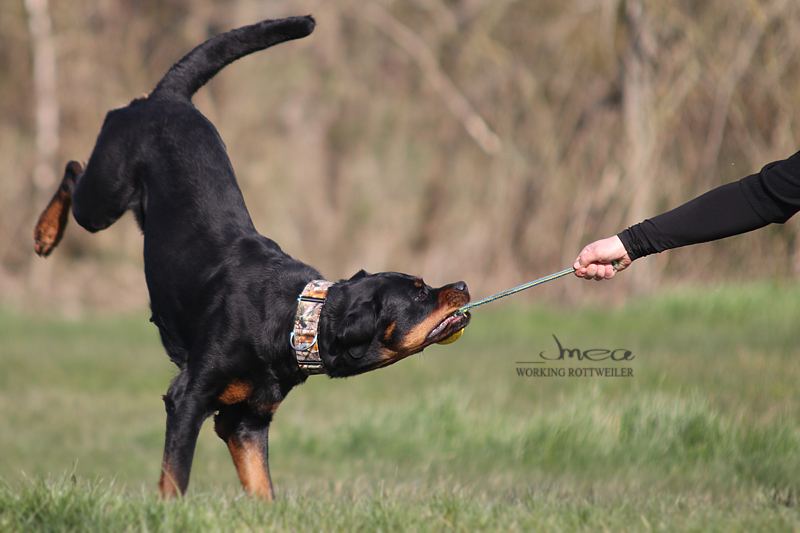 Imea ist eine soziale Hündin mit einer tollen Arbeitsbereitschaft, einem sehr hohen, belastbaren Spieltrieb, einer recht hohen Führerhärte und einem sehr guten Fresstrieb.