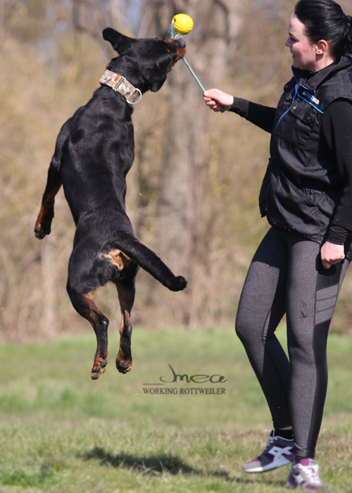 Imea wohnt mit ihrer Familie und einem weiteren Rotti im Harz und kommt nur zu Zuchtzwecken zu uns.