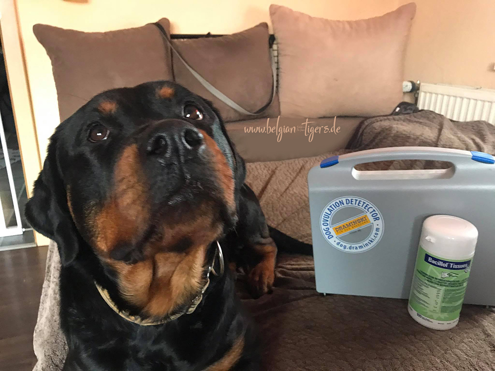 Die Progesteronmesserei nervt nämlich unheimlich. Zum Einen fällt das Blutabnehmen bei uns immer aufs Wochende, dann muss man in unserer Gegend einen ganzen Tag aufs Ergebnis warten und zum Anderen ist das Ganze ja auch immer mit Stress für die Hündin verbunden. Auch der netteste Hund findet es nicht sonderlich prickelnd, wenn an ihm rumgestochert wird.