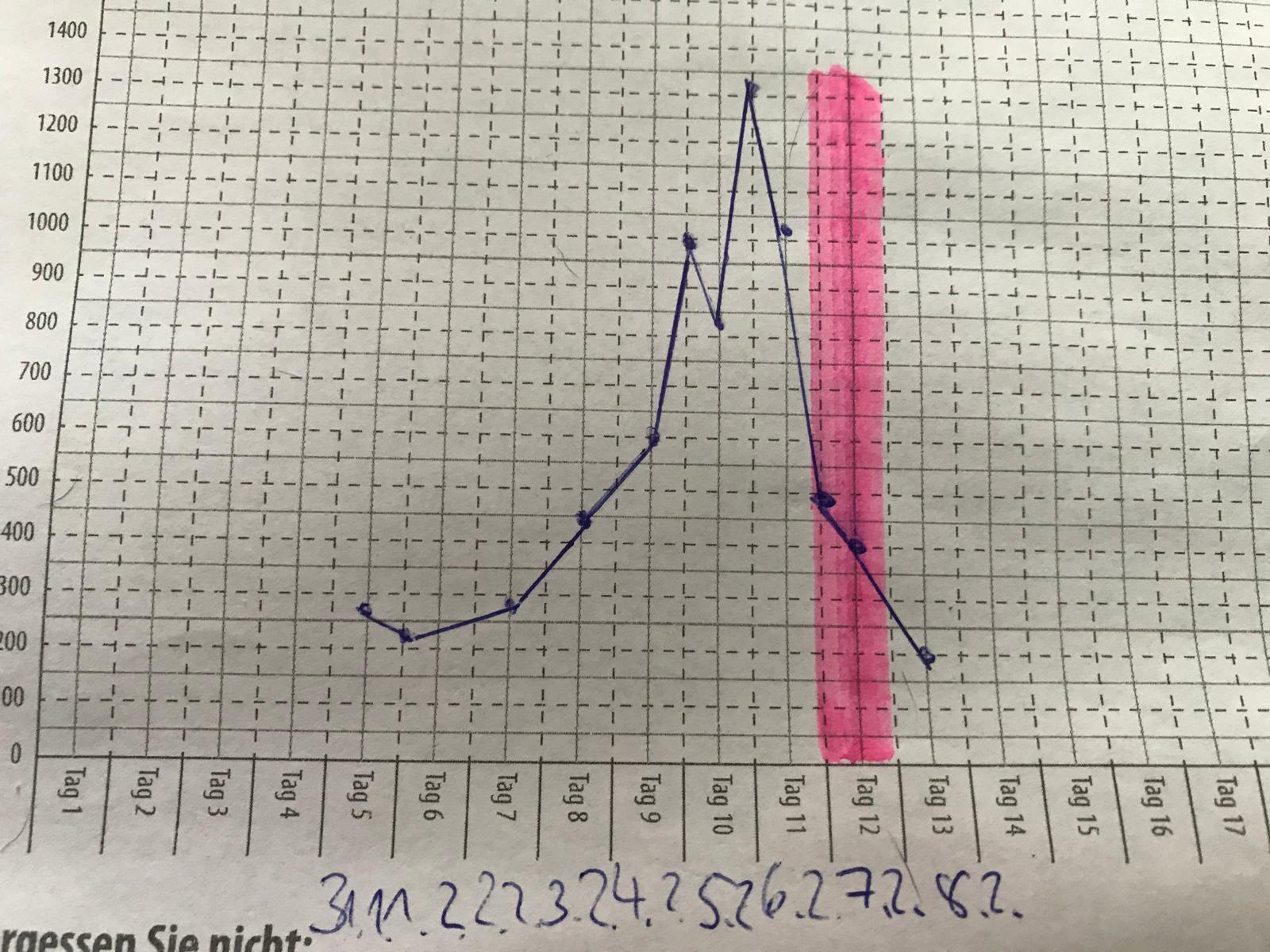 Eigentlich sollte man ab Tag 9 schon 2 mal messen - habe ich aber irgendwie vergessen.