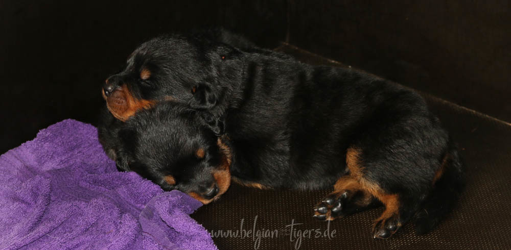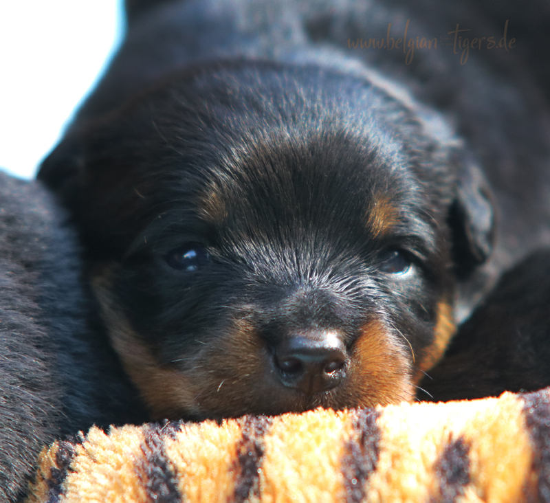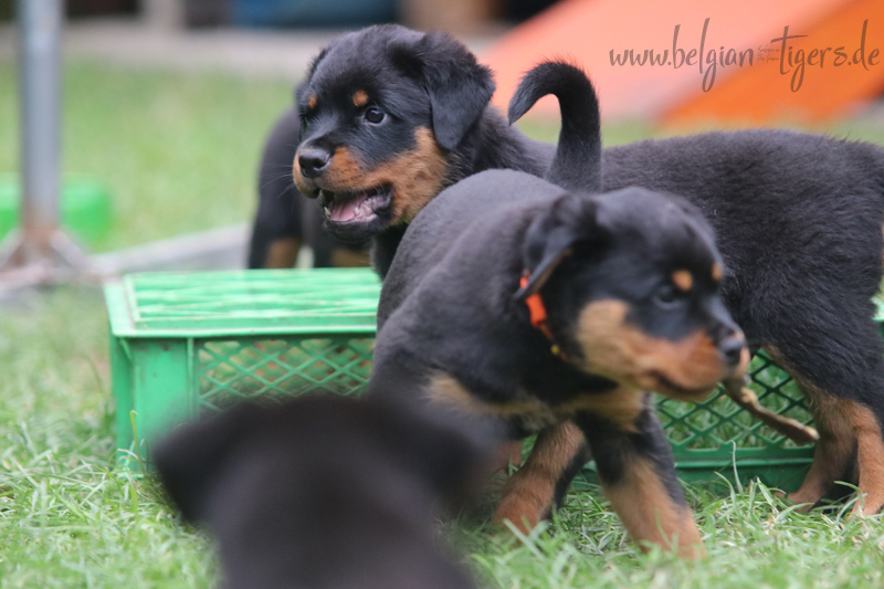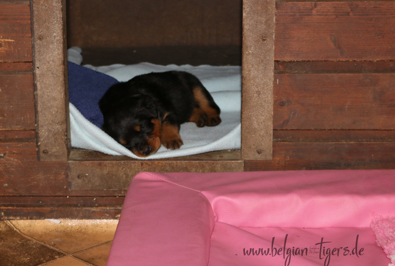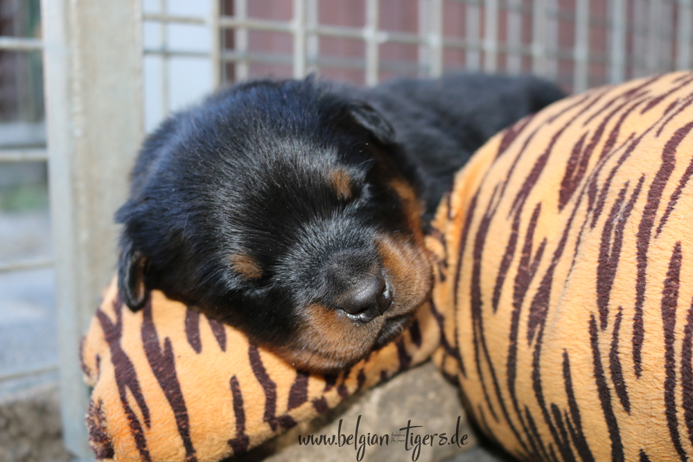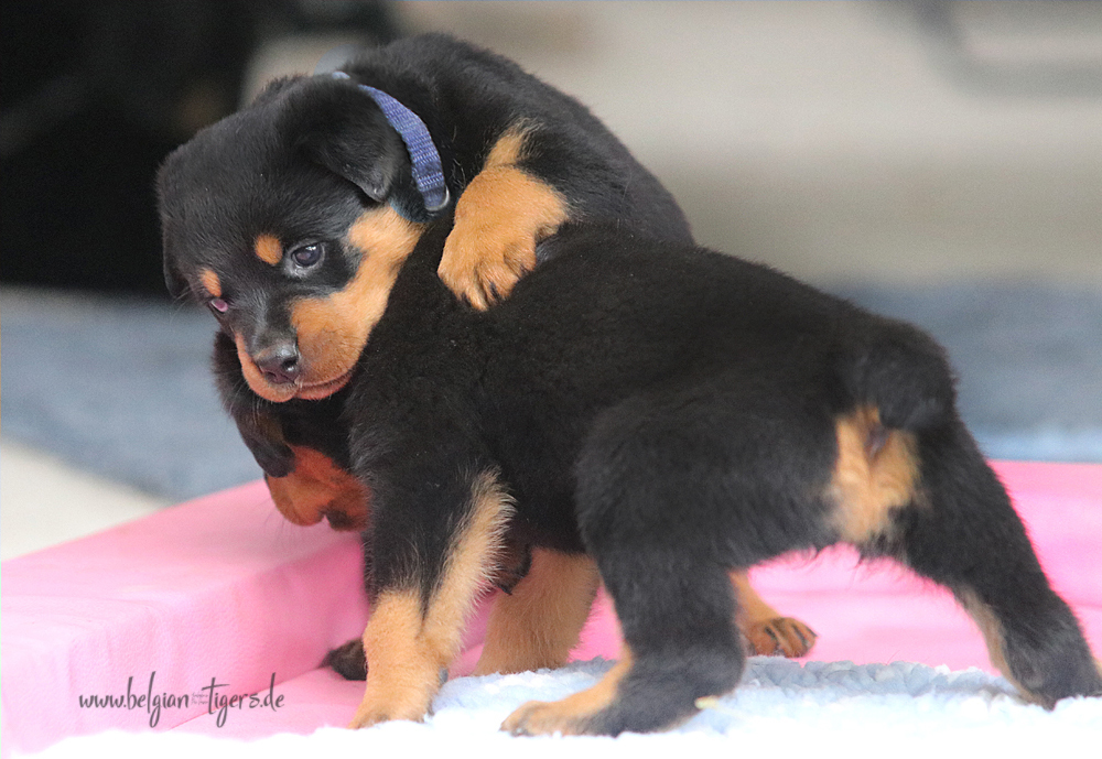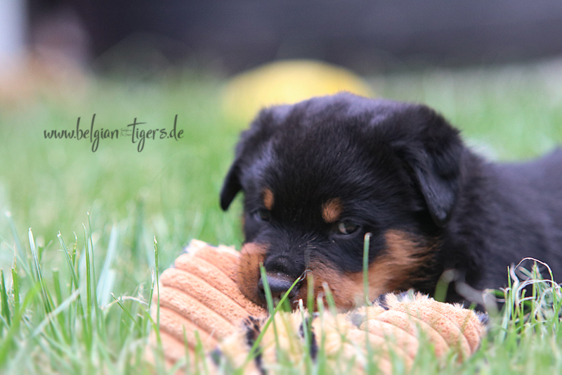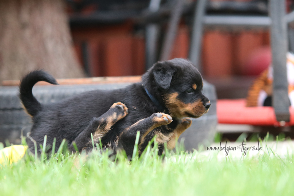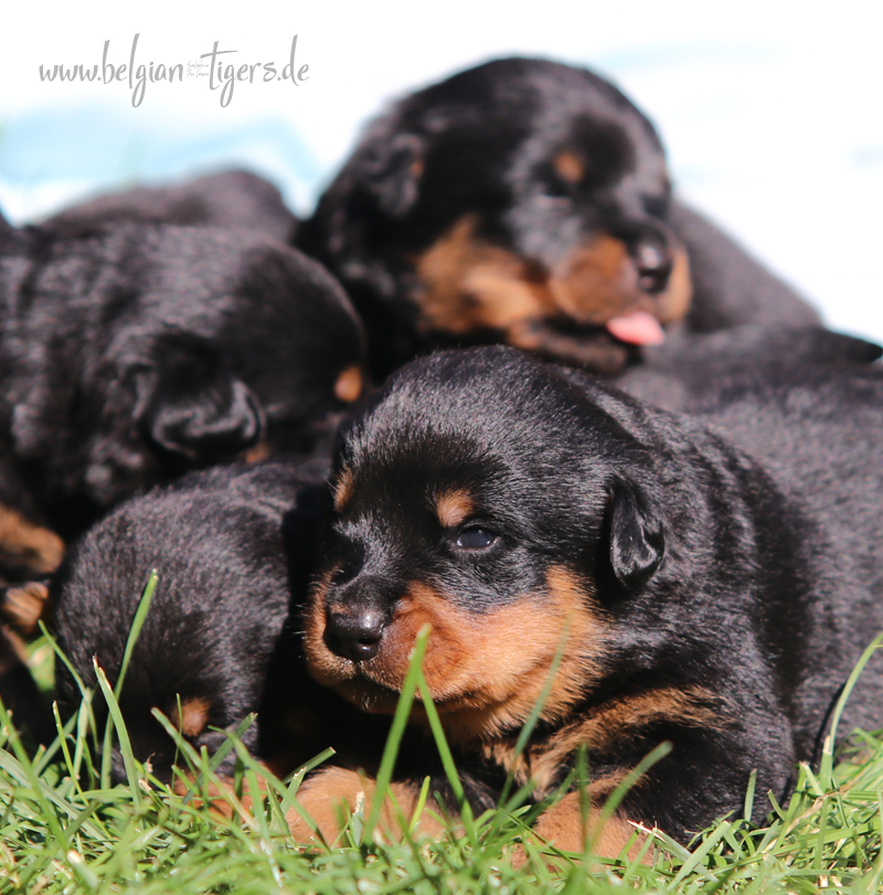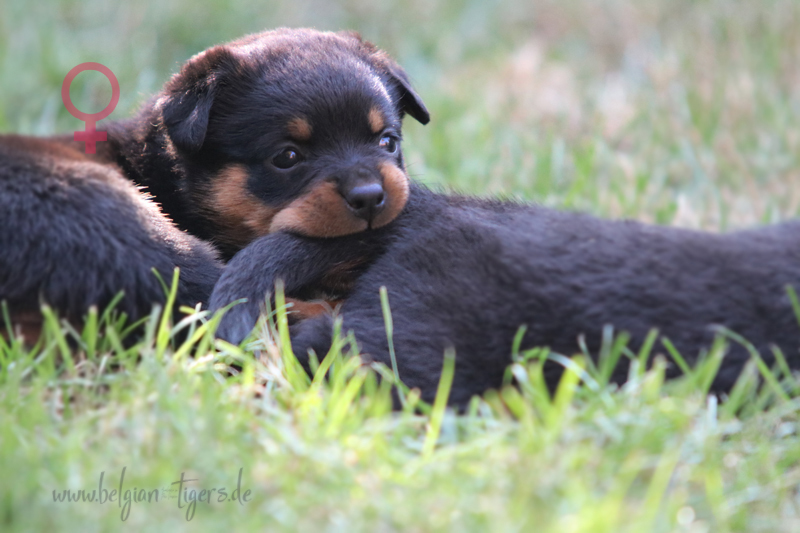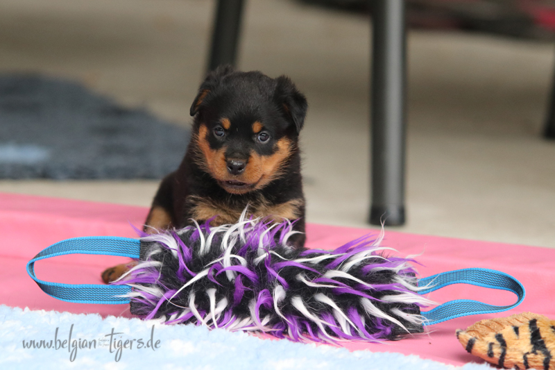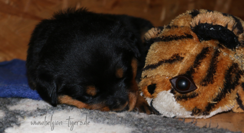 Jetzt ists amtlich - unsere kleinen Tiger dürfen ab Samstag offiziell ausziehen :-) Unser Zuchtwart hat das GO gegeben - alle Welpen haben das Mindestgewicht, mehr als erreicht - sogar unsere Minirotte Caycee. Wer hätte das gedacht. Unser Anführer Coolhead hat es auf 7 kg gebracht und *das kleine Caycee* bringt stolze 5,1 Kilo