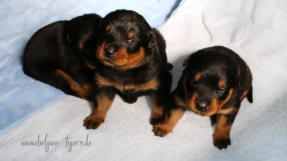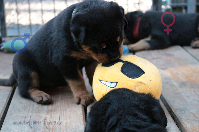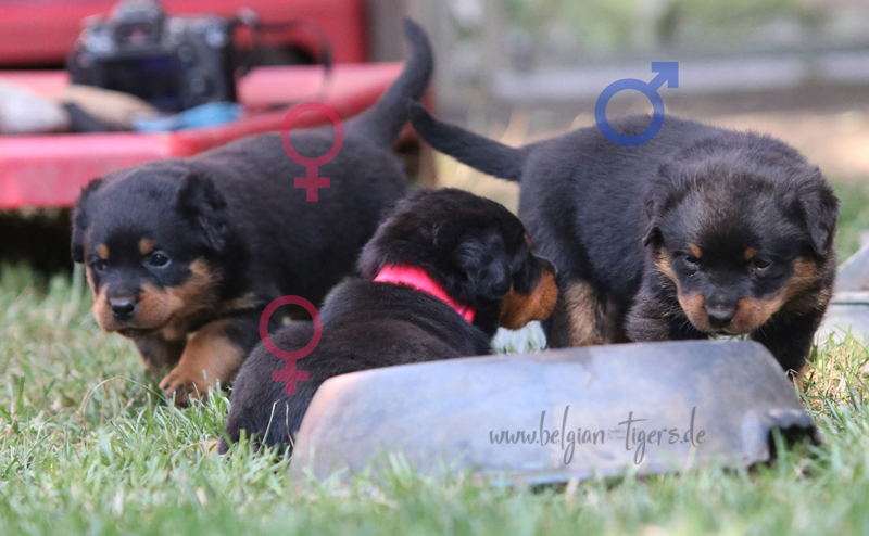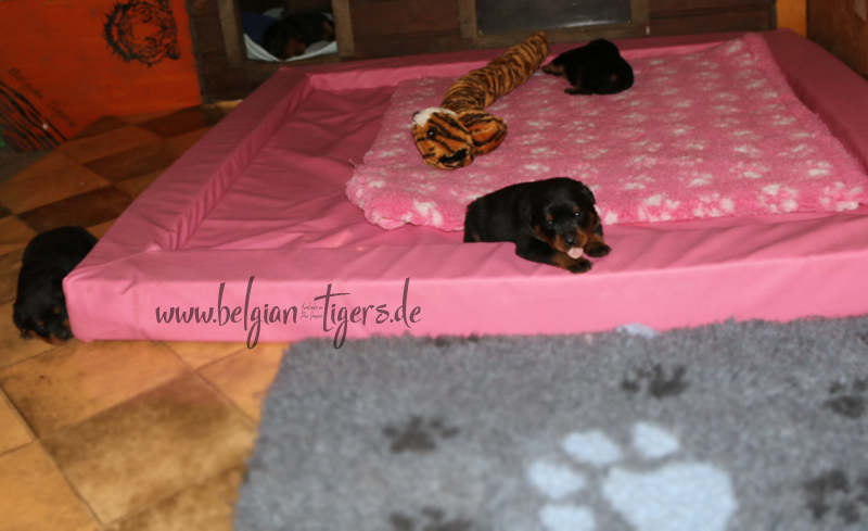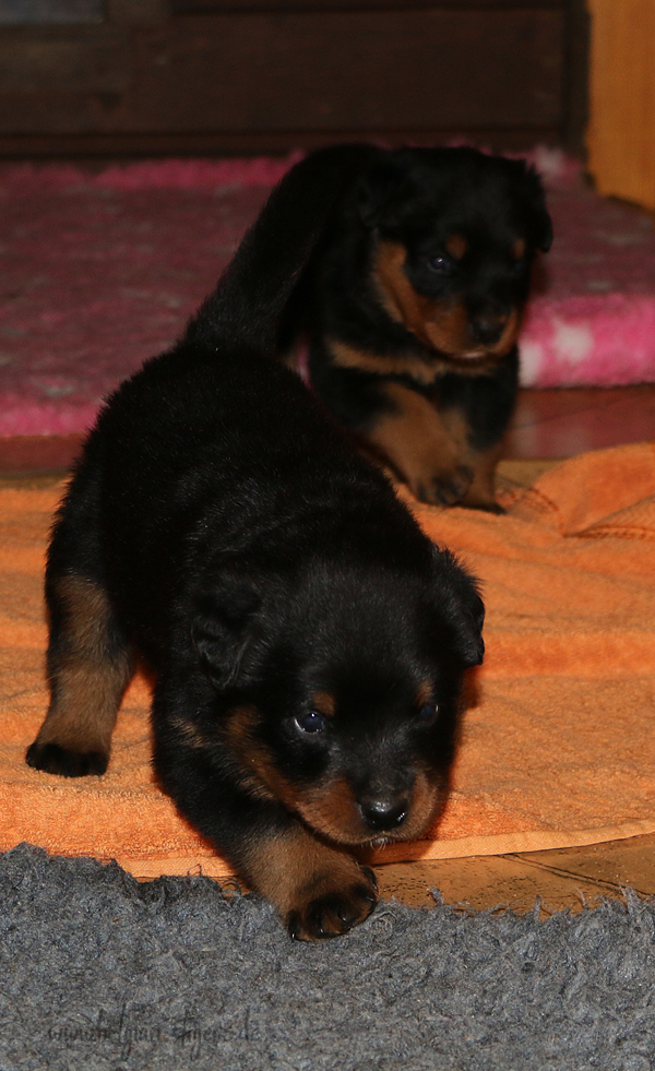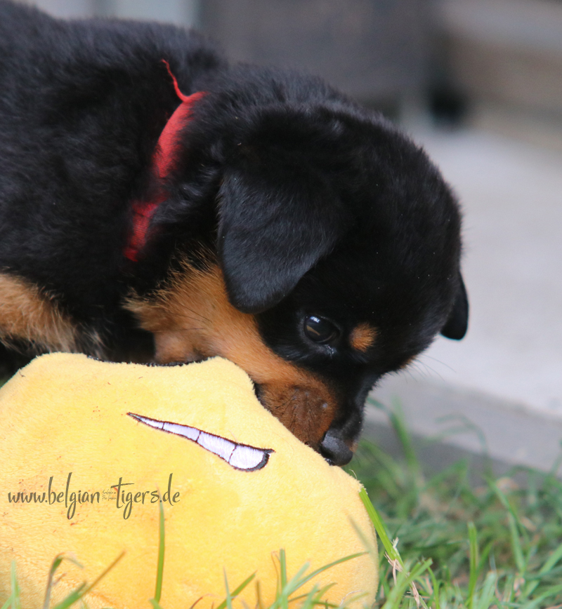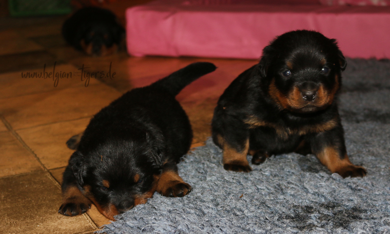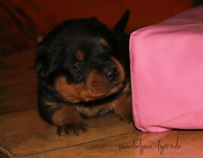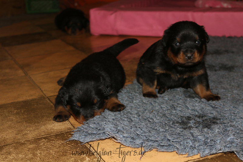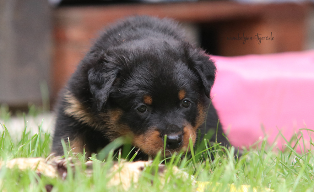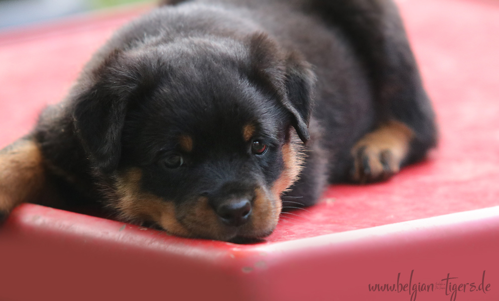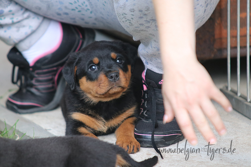 Jetzt ists amtlich - unsere kleinen Tiger dürfen ab Samstag offiziell ausziehen :-) Unser Zuchtwart hat das GO gegeben - alle Welpen haben das Mindestgewicht, mehr als erreicht - sogar unsere Minirotte Caycee. Wer hätte das gedacht. Unser Anführer Coolhead hat es auf 7 kg gebracht und *das kleine Caycee* bringt stolze 5,1 Kilo
