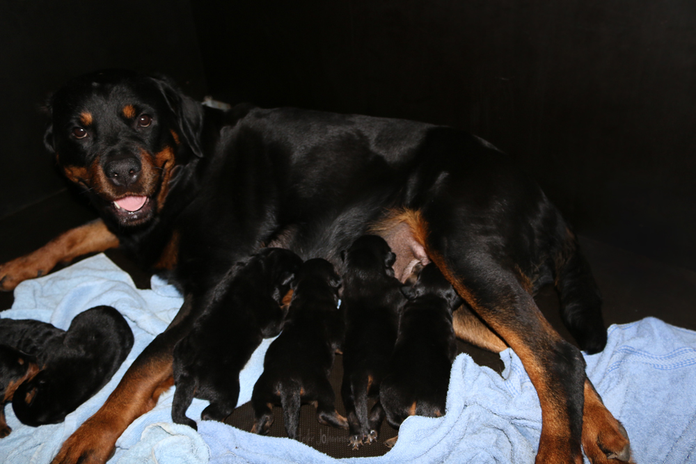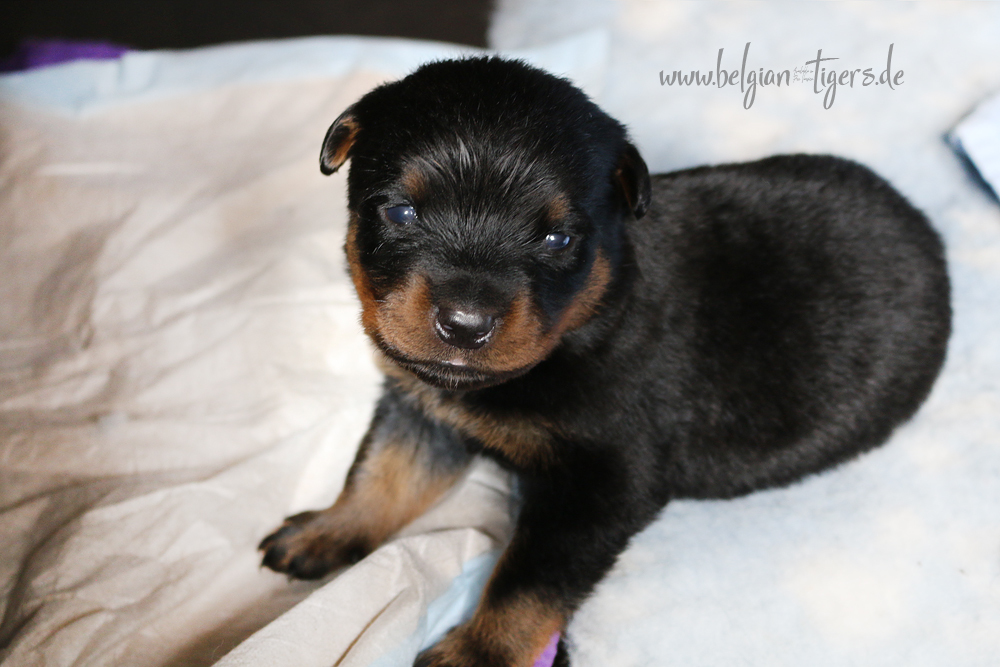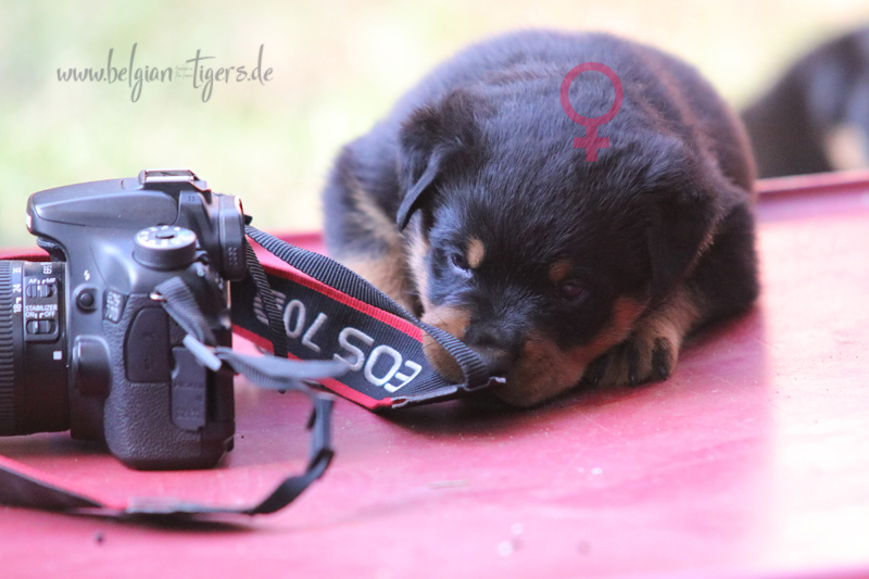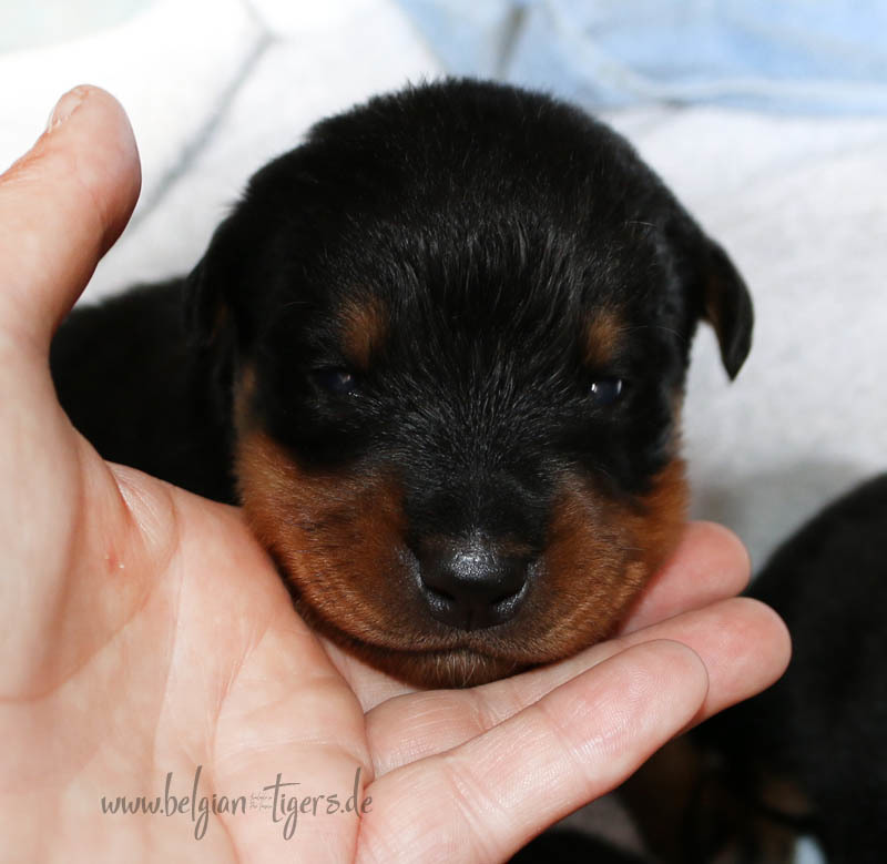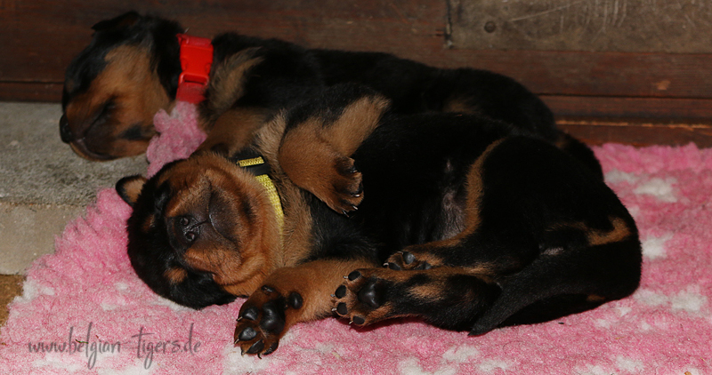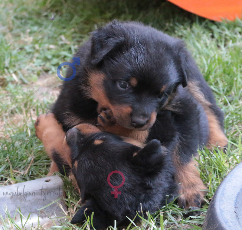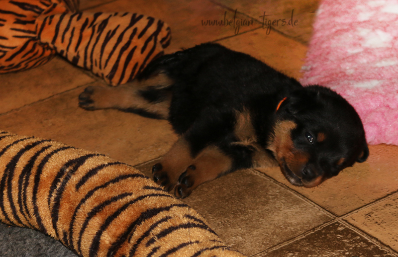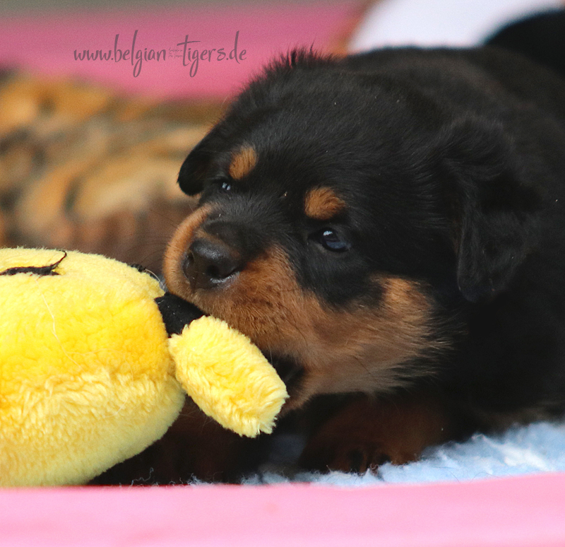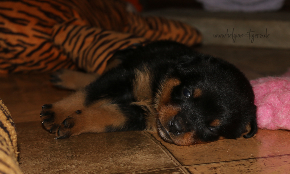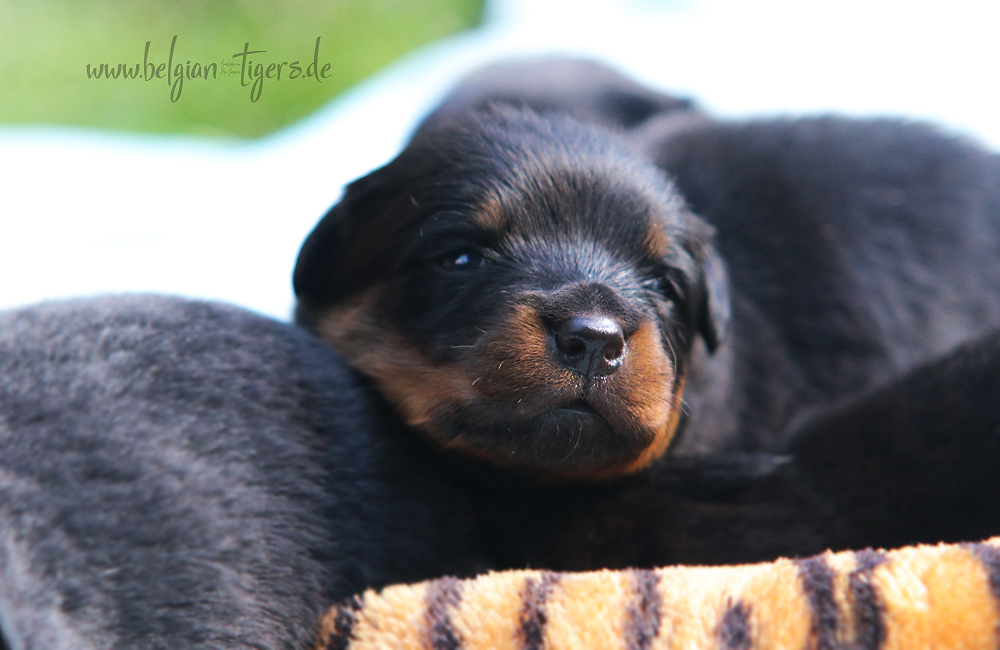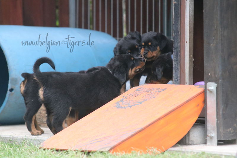 Jetzt ists amtlich - unsere kleinen Tiger dürfen ab Samstag offiziell ausziehen :-) Unser Zuchtwart hat das GO gegeben - alle Welpen haben das Mindestgewicht, mehr als erreicht - sogar unsere Minirotte Caycee. Wer hätte das gedacht. Unser Anführer Coolhead hat es auf 7 kg gebracht und *das kleine Caycee* bringt stolze 5,1 Kilo