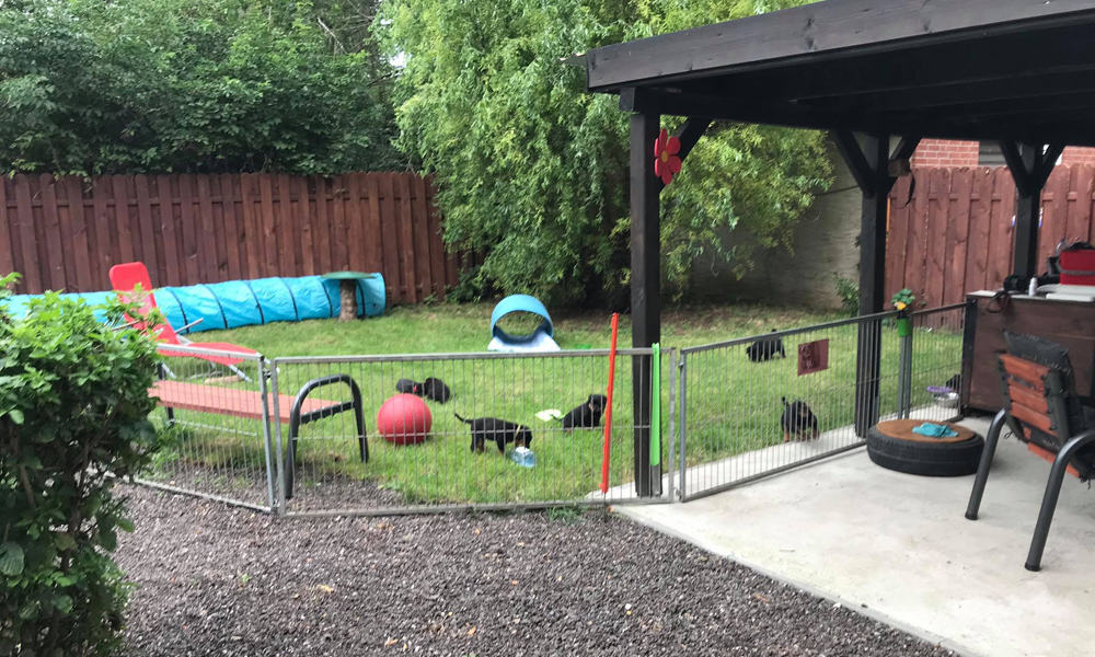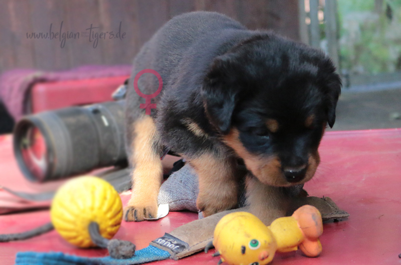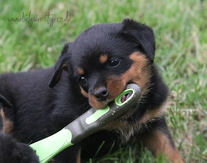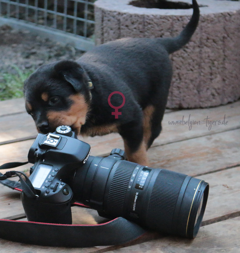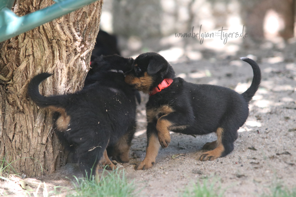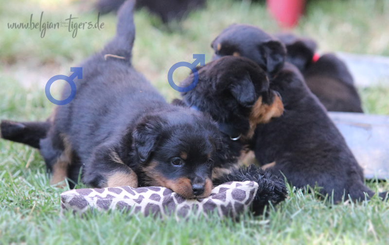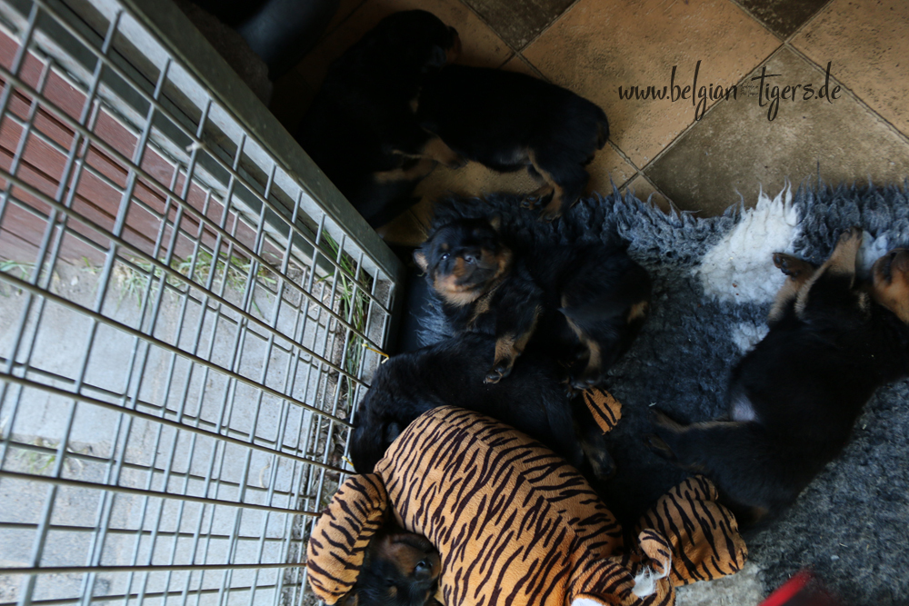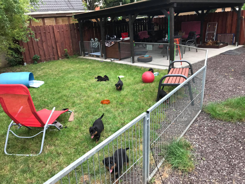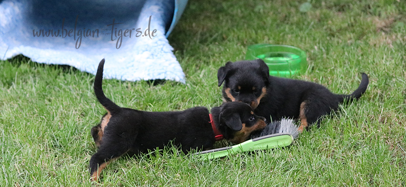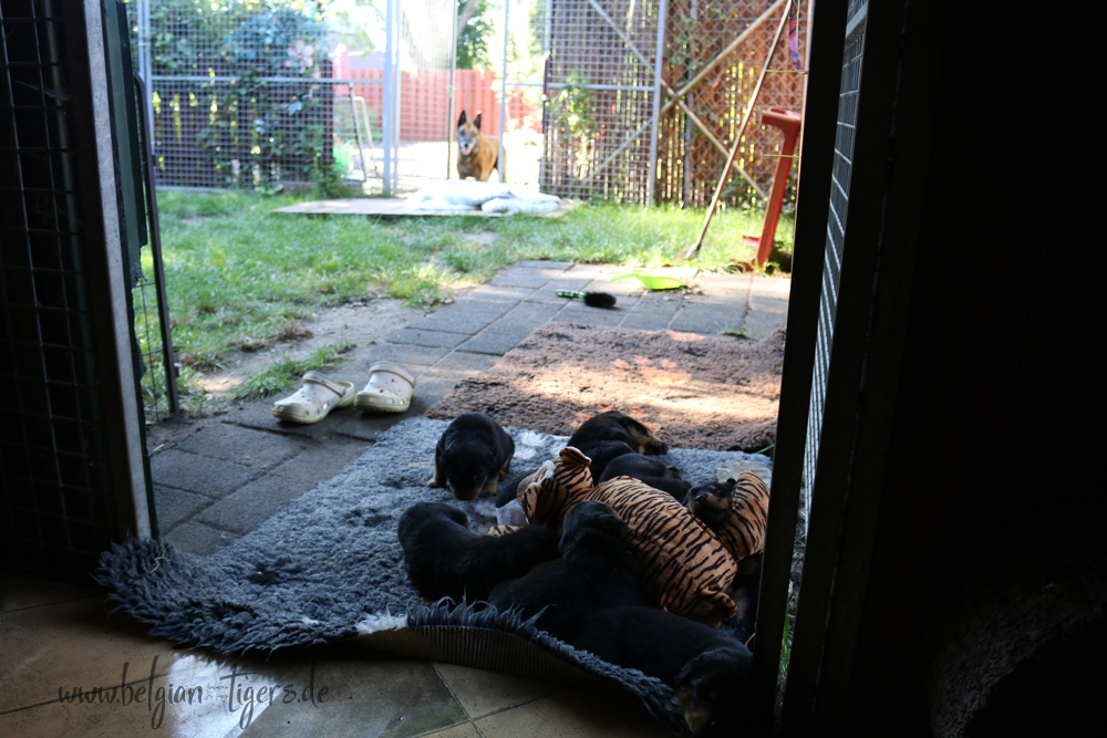 Bei uns hier war ganz schön Trubel in den letzten Wochen, aber nun ist wieder Ruhe - alle neuen Besitzer waren hier - manche sogar 2 oder 3 mal. Alle Welpen zeigen sich mega gut, sie sind schön freundlich und offen, sie sind mutig und sie können extrem lauten Kinderlärm ab. Was will man mehr. Dazu kommt, das die Zwerge sehr gut und schnell fressen, sie habe eine hammergute Verdauung und sie geben sich richtig viel Mühe um an ihr Futter zu kommen. Die besten Voraussetzungen für die spätere Ausbildung :-)
