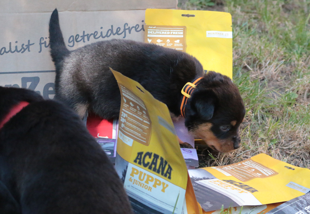 Heute sind die Welpenstarter Pakete gekommen. Für jeden kleinen Tiger eins mit dem gewohnten Futter, ein paar tollen Leckerlies und einem Spielzeug. Vielen lieben Dank an das Team von HTZ.