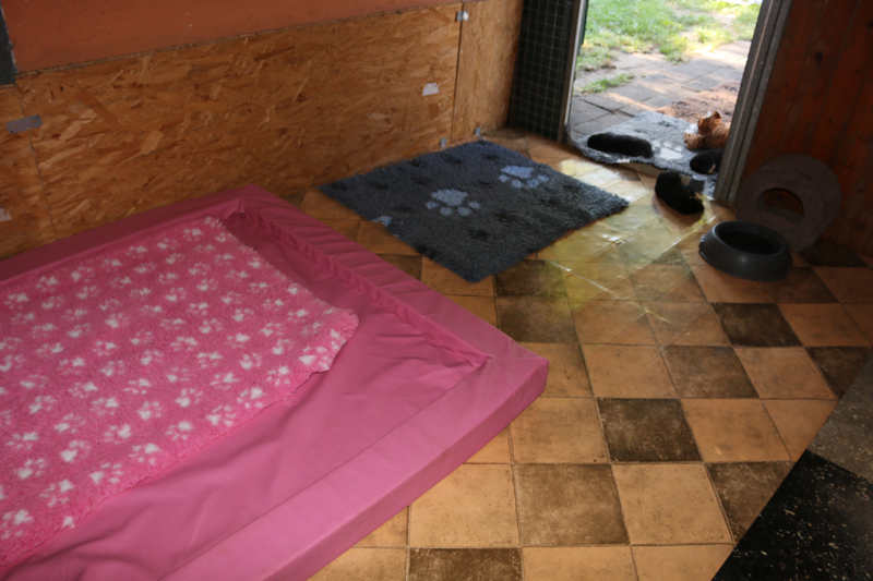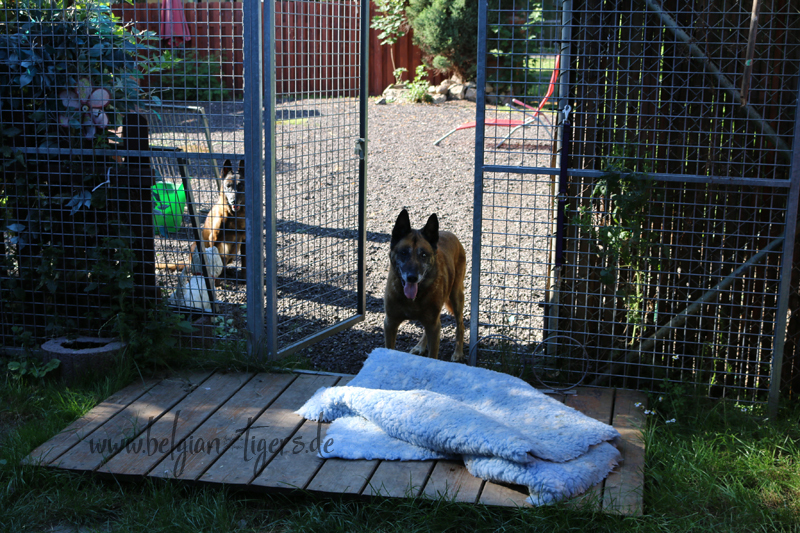 Die Kiste ist abgebaut und wurde durch ein Lederbett ersetzt und am Tage bleibt nun auch die Tür zum Auslauf auf. Zudem sind die Pipwindeln wech, mit der Hoffnung das sie den Weg, für die großen und kleinen Geschäfte jetzt pö a pö nach darussen finden.