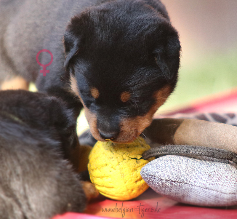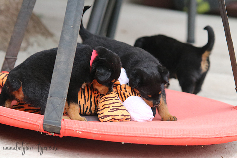 Apropos Ausbildung, auch der Spieltrieb kann sich mittlerweile sehen lassen - Spielzeug jagen und festhalten klappt vom allerfeinsten. UND die Babys sind schick - sehr schick sogar ♥