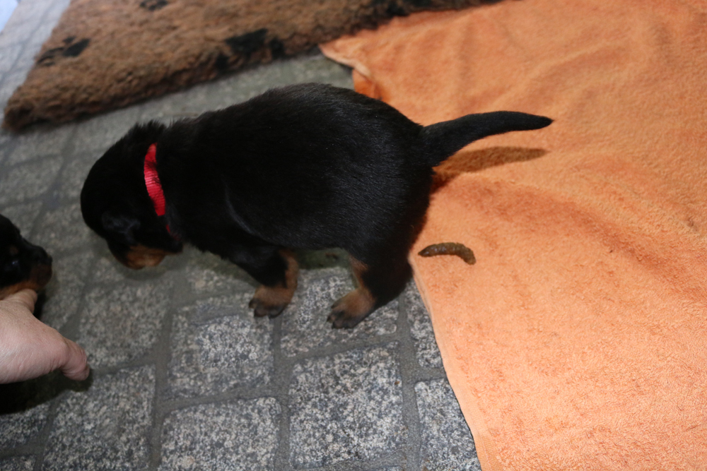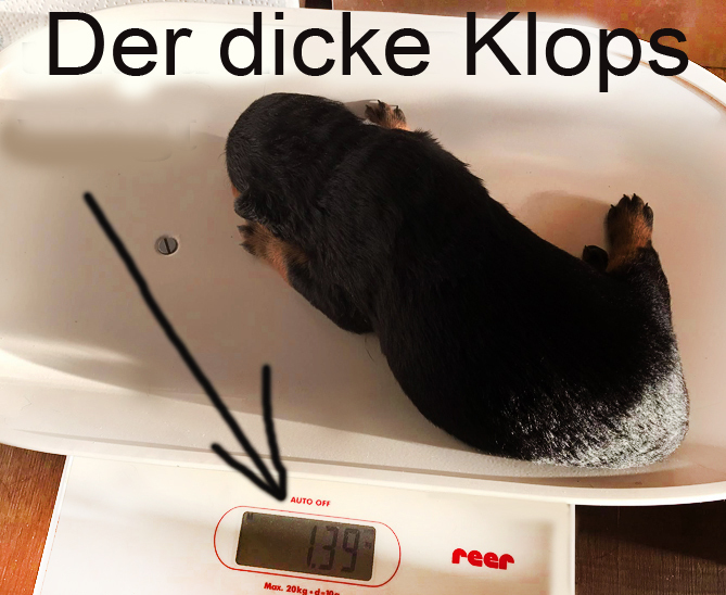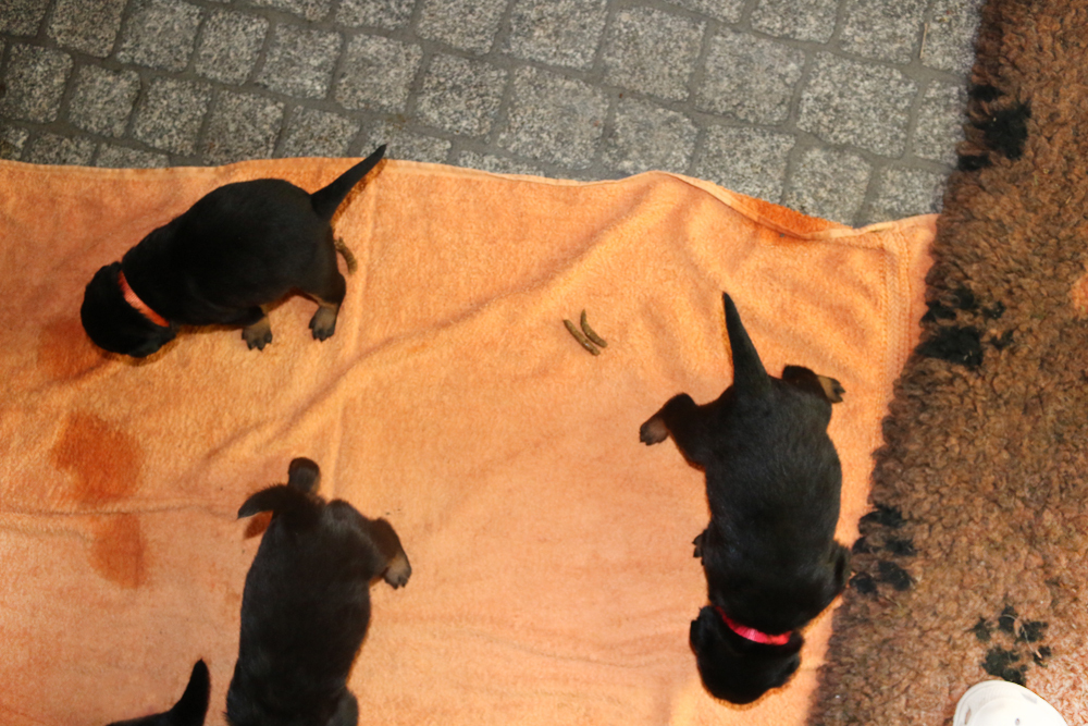 Einen Tag danach haben wir Wurf - End Abnahme. Unsere ADRK Landesgruppentzuchtwartin guckt genau hin, was wir da fabriziert haben.