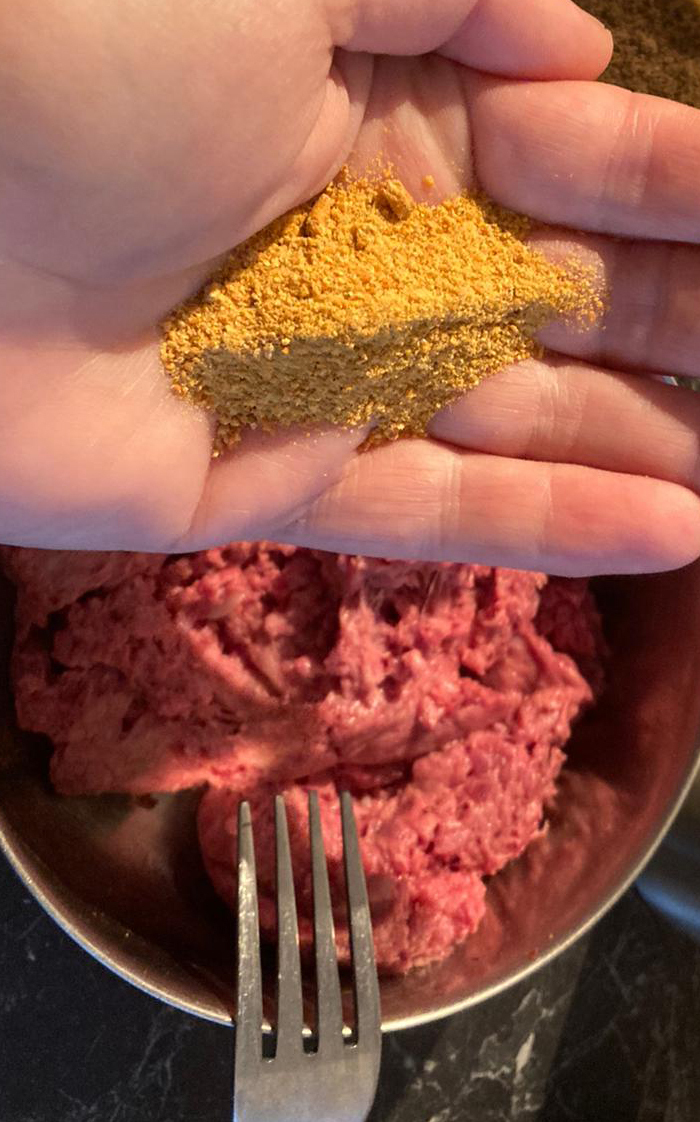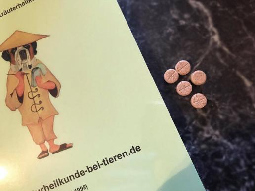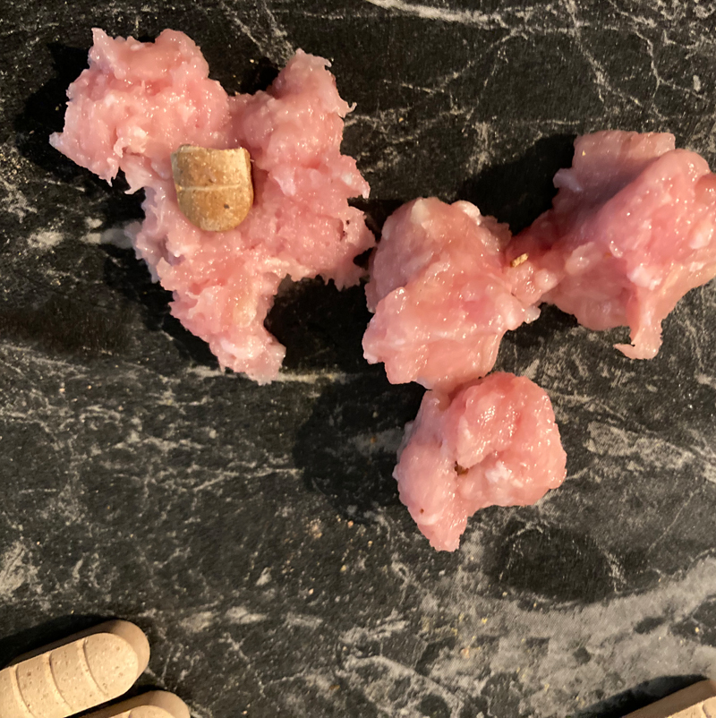 Wieder in einer Kugel Fleisch versteckt, haben die Kurzen die Teile ganz brav geschluckt und haben nichts bemerkt.