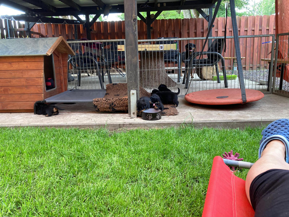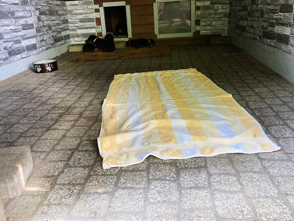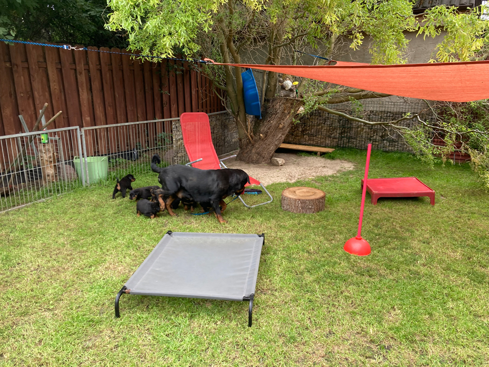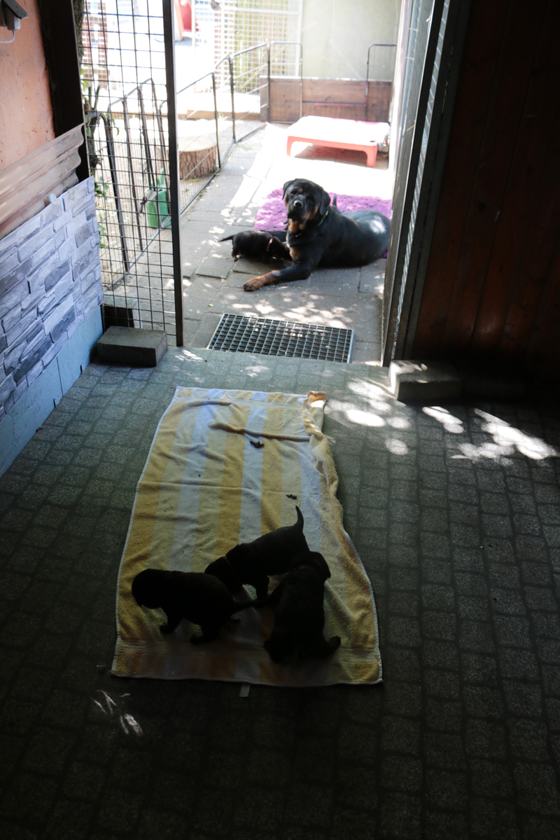 Nach 10 Tagen fast nur liegen, akribischem Welpenlutschen und langen Tiefschlafphasen, haben wir nun endlich unseren Rhythmus gefunden.
