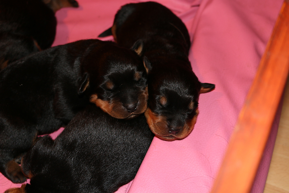 Auch wenn sie zwischen drin mal zum trinken aus der Kiste gestiegen ist, sah es schon recht abenteuerlich aus, wenn sie versucht hat, sich zwischen den Welpen wieder hinzulegen. Da ist mir auch schon ein paar mal das Herz fast stehengeblieben.