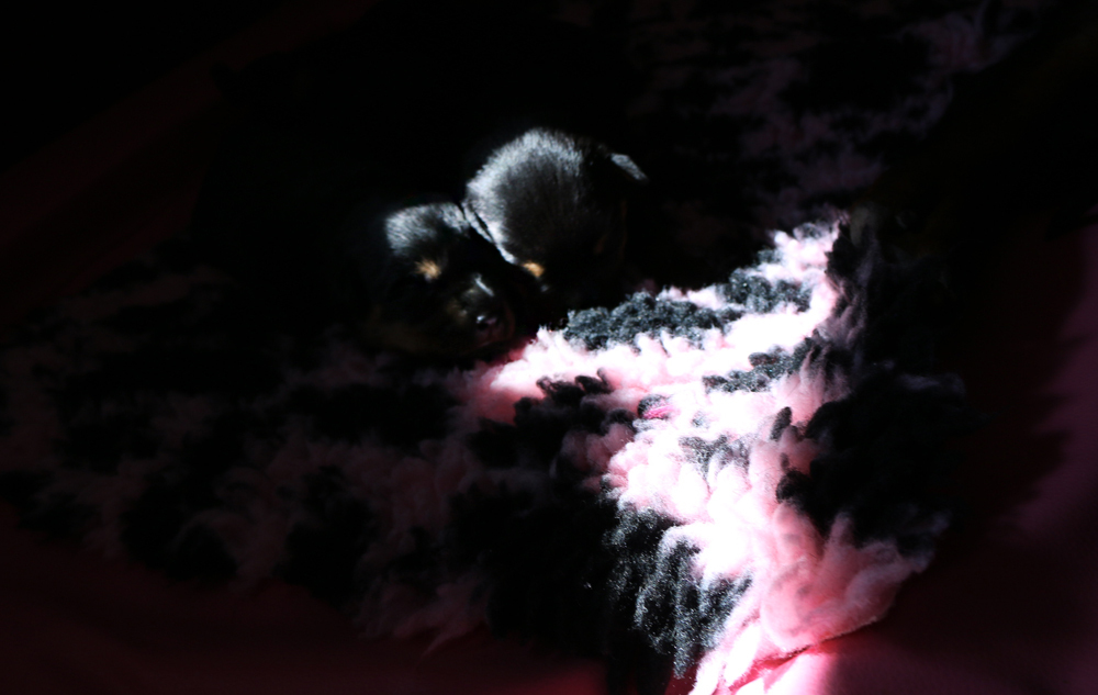 Seit gestern Abend ist die Rotlichtlampe aus. Dasha scheint es zu gefallen, wenn es nicht mehr so dolle warm ist.