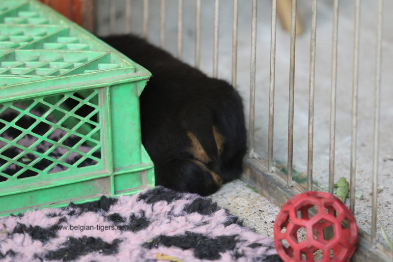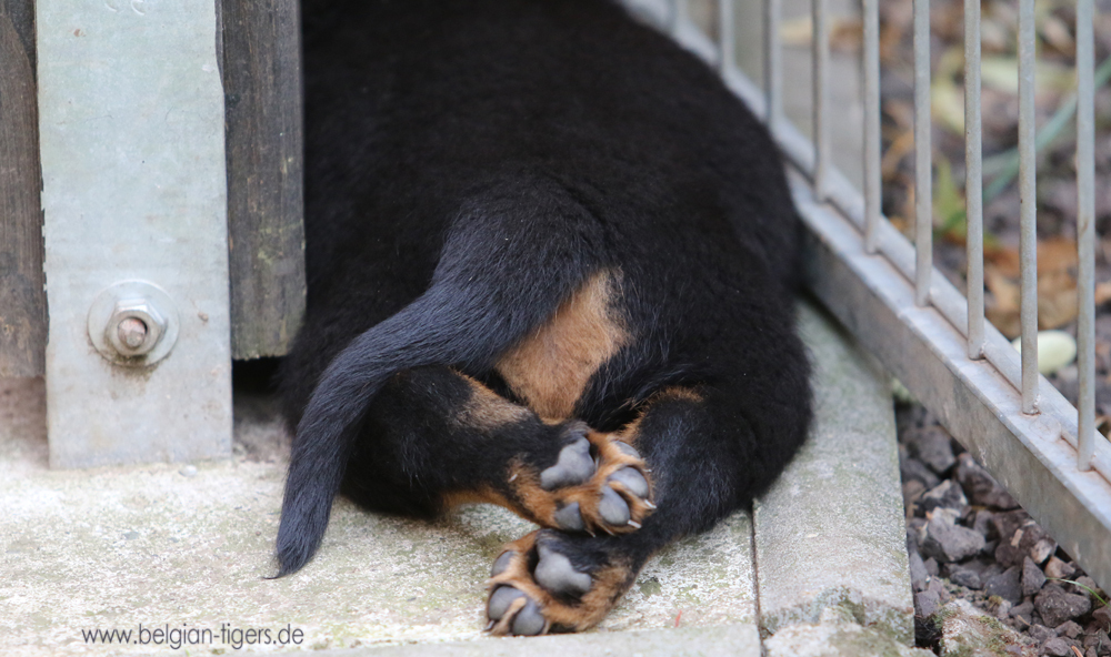 Heute Morgen ist der erste Tiger über den Welpenauslauf geklettert bzw sie hing oben auf der Kante und wollte sich gerade plumpsen lassen.